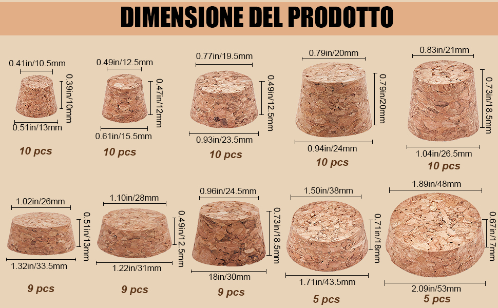 Due misure opzionali: la più grande è adatta per bottiglie di vino e l'altra per bottiglie di birra. Realizzato in materiale di alta qualità, puoi usarlo tranquillamente. Tappi Conici in Sughero Naturale da 10 Pezzi in Legno per Tappo per Bottiglia di Bir Ampio utilizzo: adatto a tutti i tipi di bottiglie, come le bottiglie di birra, bottiglie di vino, bottiglie di aceto, eccetera. Buona qualità: i tappi conici in sughero sono realizzati in sughero di legno di alta qualità, sicuro, eco-friendly, senza sostanze nocive. 10 pezzo 2 dimensioni: tappo 1: 43.5x18 mm, diametro inferiore: 38 mm, 5 pc; Tappo 2: 53x17mm, diametro inferiore: 48 mm, 5 pc. Design affusolato: i tappi per tappi di bottiglia sono progettati in forma affusolata, che può adattarsi bene alla bocca della bottiglia. Tappi Sughero Amazon 120 Tappi Di Sughero Conici Per Bottiglia Di Vino In Legno Morbido Tappi Di Sughero Per Vino E i tappi di legno non si romperanno facilmente quando verranno estratti, affidabile da usare.