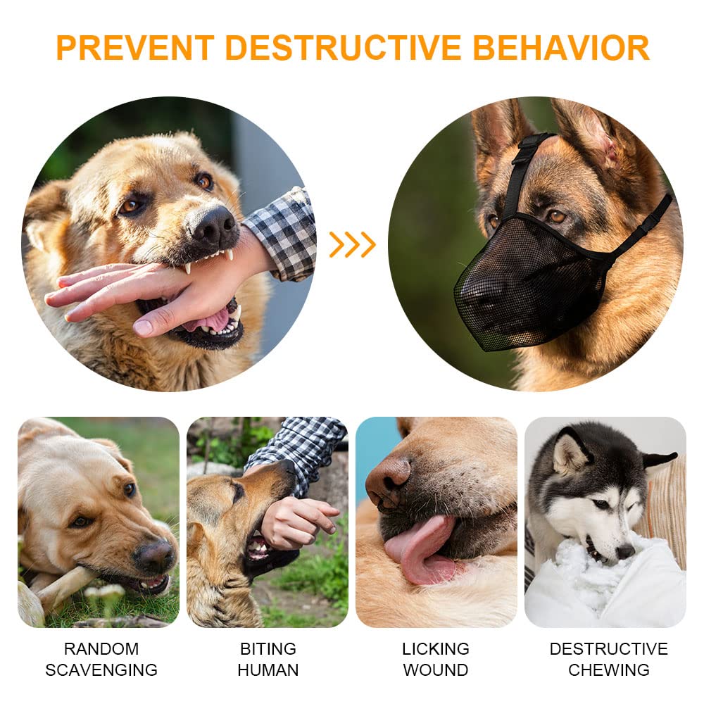 Museruola Cane Taglia Grande Museruola Morbida Per Cani Di Taglia Grande, Media E Piccola, Museruola In Rete Per Cani Con Cinghia Sopra La Testa, Museruola Traspirante Per Cani Con Cinghia Riflettente E Regolabile Per Evitare Prodotti Per Cani Taglia Media 【Migliore traspirabilità】 Questo design a museruola è morbido, confortevole e resistente e offre al vostro cane la massima traspirabilità. Le museruole sono una scelta eccellente per le visite veterinarie, per addestrare un cane a indossare una museruola o per portare a spasso il tuo cane reattivo Il materiale a rete favorisce la circolazione dell'aria e assicura che il vostro cane possa respirare comodamente mentre indossa la maschera. 【 Sicurezza riflettente 】 Per una maggiore sicurezza durante le passeggiate notturne, questa museruola dispone di strisce riflettenti che aumentano la visibilità e proteggono il vostro cane in condizioni di scarsa illuminazione. Protegge anche da strappi, masticazione e rosicchiamento, offrendo una garanzia di sicurezza per le passeggiate all'aperto. La fibbia impedisce lo scivolamento e la caduta della museruola. Cinghie regolabili, taglia universale: con le cinghie regolabili è possibile regolare il comfort del museruola per il vostro cane, e grazie alle dimensioni regolabili, la maschera si adatta a quasi tutti i cani grandi, medi e piccoli con bocche lunghe.