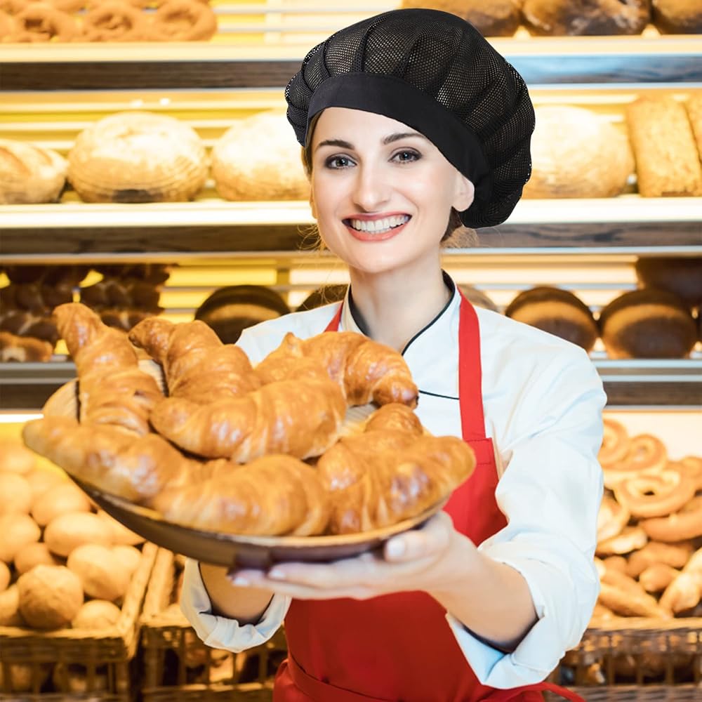 Visxcnu 2 PCS Cappello Cuoco Retina Per Capelli,Cappello Cuoco,Cucina Nera Mezza Maglia Elastico Traspirante Retina Capelli Forno Donna Servizio Di Catering Retina Capelli Cappello Chef : Amazon.it: Moda