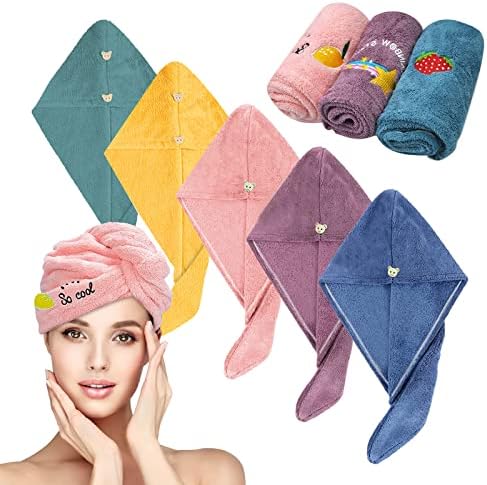 Asciuga Capelli HOMEXCEL Confezione Da 5 Asciugamani Per Capelli In Microfibra, 101,6 X 50,8 Cm, Super Morbidi, Ad Asciugatura Rapida, Per Capelli Lunghi, Spessi E Ricci, Avvolgenti Anti Crespo Con Fascia Elastica