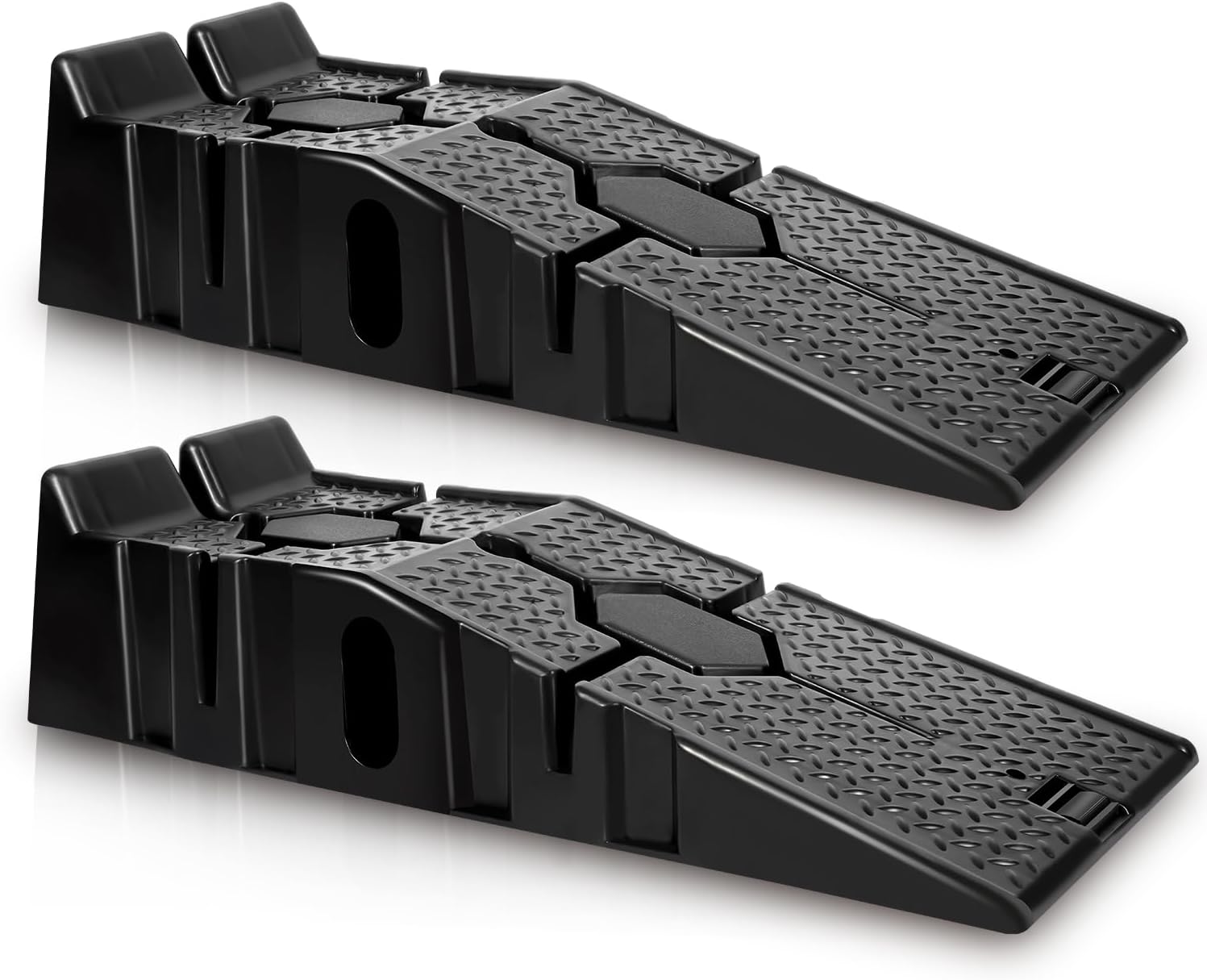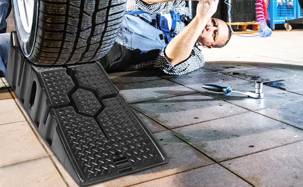 Robusto e durevole]La rampa pesante è realizzata in plastica, due pezzi sono forniti nel set, ogni coppia ha una portata fino a 2500 kg, che è molto forte e può guidare veicoli di grandi dimensioni in modo sicuro Ideale per piccoli lavori di manutenzione e manutenzione sotto il veicolo Sicuro, veloce e facile da usare, ideale per qualsiasi applicazione. Rampa Moto 2 Rampe Di Carico In Plastica Per Carichi Pesanti Fino A 7 Tonnellate Rampe Per Auto Realizzato in materiale PP di alta qualità per prestazioni durature Altezza di sollevamento: 16,5 cm