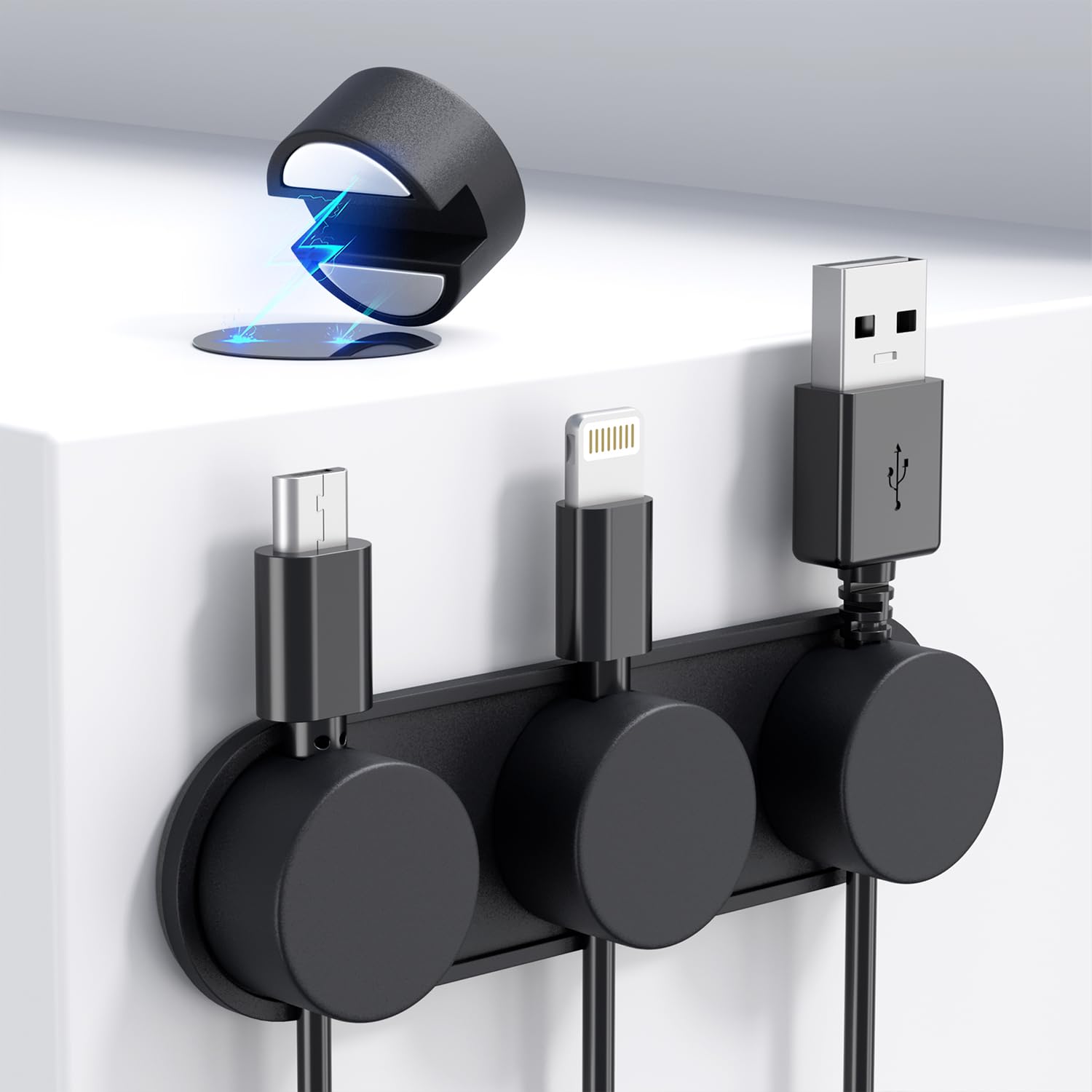 AGPTEK Supporto Magnetico Per Cavi, Clip Di Gestione Dei Cavi, Clip Per Cavi Autoadesivi, Multiuso, Per Scrivania, Cavo Di Alimentazione, Cavo Di Ricarica USB, Cavo Audio, 4 Clip, Grigio