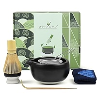 Artcome Kit Per Cerimonia Del Tè Giapponese, Ciotola Tradizionale Per Matcha, Frusta, Paletta, Colino In Polvere - Set Per Preparare Latte Usucha, Koicha (Nero) : Amazon.it: Casa E Cucina