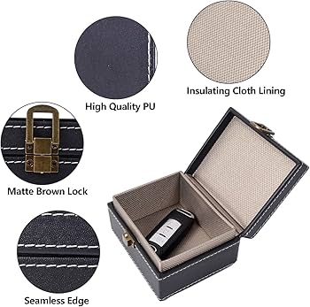 Tutti i segnali, come ad esempio I segnali Bluetooth, Wi-Fi e cellulari vengono bloccati dalla scatola protettiva. Se non siete soddisfatti, vi preghiamo di farcelo sapere in modo che possiamo pensare insieme a voi come possiamo rendervi soddisfatti. Ciò impedisce furti e frodi quando metti le chiavi della macchina, il portafoglio, il telefono o le carte di credito nella scatola protettiva. Questa custodia protettiva per chiavi auto Keyless Go è silenziosa! ... Design elegante in vera pelle: questo portachiavi antifurto non solo offre una protezione avanzata, ma si abbina anche perfettamente al tuo stile con il suo design elegante in vera p In breve, la scatola chiave ideale per chiavi radio [Custodia protettiva multifunzionale] - La scatola Faraday non solo può proteggere la tua auto dai furti, ma anche altri oggetti soggetti a frodi dai furti. Antifurto Auto Custodia Antifurto Per Chiave Con Tecnologia Faraday - 1 Confezione Di Buste Faraday Per Scatola Antifurto Per Auto Se ordinate questa scatola di protezione per chiave auto, siamo sicuri che sarete soddisfatti al 100%. A differenza di altre scatole protettive, questa scatola Faraday ha una serratura stabile e bloccabile. Questo si traduce in un mix di tecnologia e design tradizionale, rendendolo l'aggiunta definitiva alla decorazione dei tuoi interni. Ciò garantisce che al 100% nessun segnale possa penetrare. [100% SODDISFAZIONE GARANTITA] --. Altre marche utilizzano spesso una chiusura magnetica che, come molti test hanno dimostrato, può influire sulla protezione.