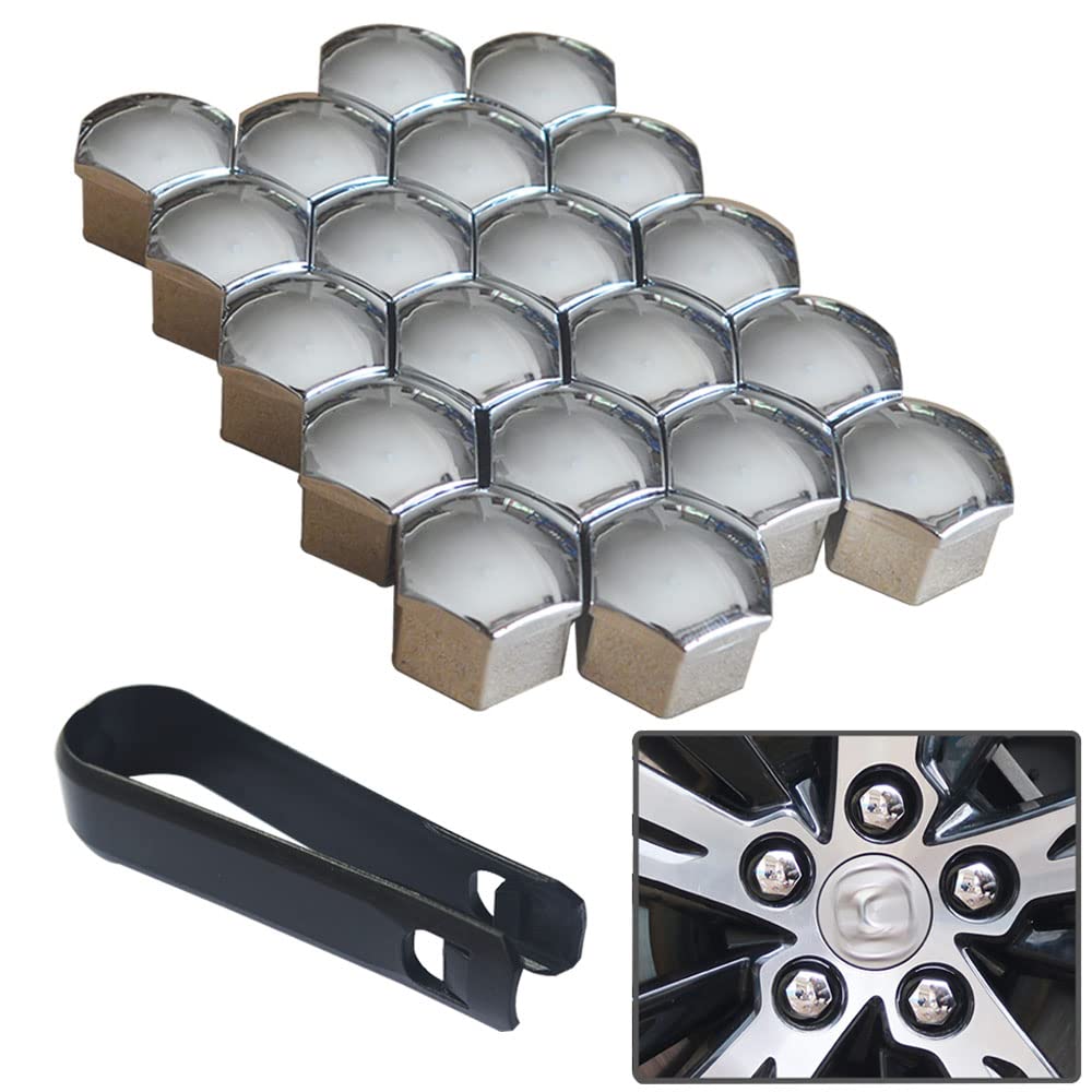 Tappi Cerchi Volkswagen 20 Pz/borsa Coperture Per Dadi Per Ruote In Plastica Cromata Per Copri Bulloni Per Ruote Nome: copertura per dadi Materiale: plastica. Quantità: 20 pezzi. Colore: argento. DAZZLUXE 20 custodie protettive per dadi con 1 clip, tappi per dadi per pneumatici da 17 mm, custodia decorativa in plastica, accessori per auto (argento) sylbx 20 Pezzi Copridado Ruota 19mm Copribulloni,Copri Bulloni Ruota Universali,Tappi Copridado Ruot Dimensione: 76,5 mm Caratteristiche del prodotto: il materiale è duro, non facile da sbiadire, non facile da deformare, resistente all'usura e resistente alla corrosione e può essere utilizzato a lungo. Design impermeabile: questo copridado non solo può proteggere i copridadi da pioggia e polvere ed evitare ruggine, ma anche rinforzare i copridadi per migliorare le prestazioni di sicurezza. Durante lo smontaggio, utilizzare la clip nera in dotazione per rimuovere il coperchio protettivo del dado. Il materiale è duro, non facile da sbiadire, non facile da deformare, resistente all'usura e alla corrosione e può essere utilizzato a lungo. Contenuto della confezione: riceverete 20 coperture per dadi da 17 mm in argento; 1 clip nera con una dimensione di 76,5 mm per soddisfare le esigenze della vostra auto.