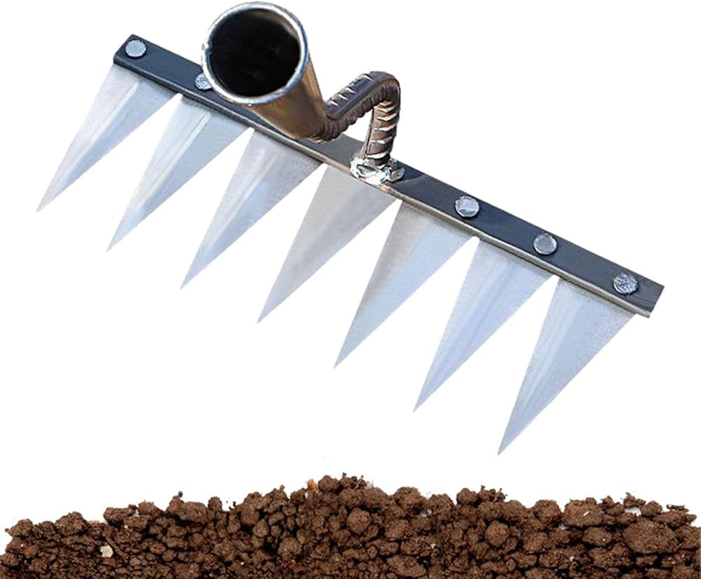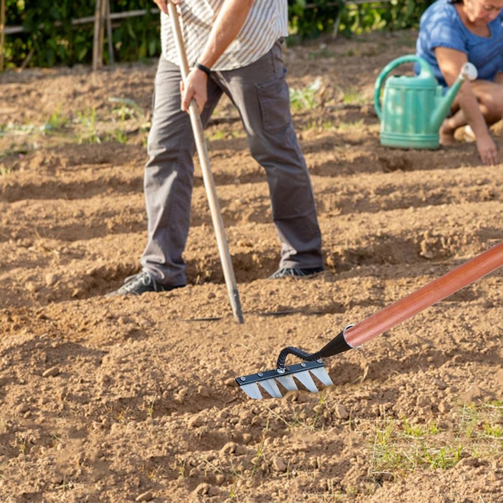 È unos strumento flessibile e conveniente che rende il giardinaggio più facile e divertente. Il design compatto lo rende comodo da riporre e portare in giros. Questo rastrello da giardino è progettato per aiutarti a fare giardinaggio con facilità e gioia. Specifica: Materiale: acciaio al carbonio. Tabella di formato Rastrello Da Giardino - Strumento Per 4/5/6/7 Denti Cava In Acciaio Temprato, Accessorio Per Diserbo Multiuso Per Terrazza, Fattoria, Orto, Retro Cortile Rastrello Per Diserbo Luoghi applicabili: questo rastrello per zappa può resistere a qualsiasi condizione atmosferica. È unos strumento affidabile che durerà per anni e manterrà il tuo giardino libero dalle erbacce. Flessibile e conveniente: puoi utilizzare questo rastrello per diserbo per varie attività di giardinaggio, come scavare, diserbo, piantare, seminare e allentare il terreno. Può funzionare nell'orto, nella fattoria, nel giardino, nel cortile e nel patio e rimuovere le erbacce dal livello della radice. Diserbo e allentamento del terreno: con questo rastrello per diserbo, puoi facilmente diserbare e allentare il terreno nel tuo giardino, rendendolo ideale per la coltivazione di fiori e verdure.