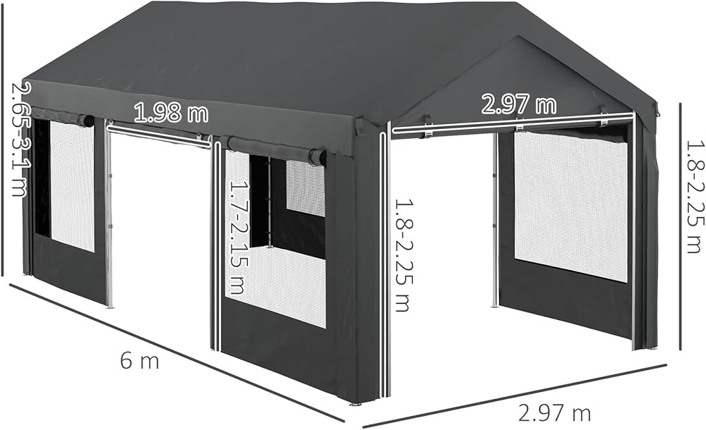 Inoltre, le pareti sono rimovibili, per una protezione extra dal sole o per una maggiore circolazione dell'aria. Le robuste giunzioni angolari in metallo rendono il gazebo più resistente e aggiungono ulteriore stabilità. DESIGN PRATICO: Pareti laterali rimovibili con 10 finestre per un'ottima circolazione dell'aria; porte con cerniera per un facile accesso; è possibile rimuoverle entrambe per una migliore ventilazione e sfiato nelle giornate più calde Casa Prefabbricata Outsunny Tendone Per Feste 6x4m Con Pareti Rimovibili E Finestre | Italy Tenda Da Sole Per Esterno Perfetto per matrimoni, feste, riunioni e così via. Sono richieste 3-4 persone per il montaggio PROTEZIONE OTTIMALE: Il tetto del tendone per feste è realizzato in polietilene, che protegge dal sole e dai raggi UV. NOTA: Ti consigliamo di non lasciare il gazebo su durante la notte o in caso di maltempo e di misurare l'area a disposizione prima dell'acquisto. COSTRUZIONE STABILE: Struttura in acciaio zincato di alta qualità, resistente alla ruggine.