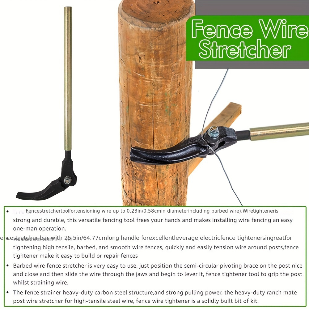 25,5 pollici/64,77 cm Lista Imballaggio: 1 tenditore per recinzione in filo metallico 1 maniglia Specifiche: Tipo di articolo: tenditore di filo per recinzione Materiale: acciaio al carbonio Lunghezza della maniglia: ca. Filo Spinato Per Recinzioni TENDITORE PER RECINZIONE Tenditore Per Filo Recinzione Recinzione Selvaggia Recinzione Per Tendifilo Funi Acciaio [Ampia applicazione] Ideale per la casa, la fattoria, il giardino, i cantieri edili e le aziende di maricoltura, questo strumento per barella per fissare la recinzione è versatile e pratico. [Facile da usare] Il tenditore per recinzione è semplice da usare, basta posizionarlo al palo, far scorrere il filo e iniziare a tensionare. [Leva eccellente] Questo tenditore per filo di recinzione da 25,5 pollici offre un'ottima leva per stringere senza sforzo recinzioni di filo spinato, ad alta tensione ed eleganti. Con il tenditore per recinzioni di XPOtool è possibile costruire recinzioni per pascoli e telai in filo metallico completamente da soli. Il tenditore è adatto per collegare due fili e può essere utilizzato anche per il tensionamento di una recinzione . La [Materiale durevole] Realizzato in acciaio al carbonio di alta qualità, questo strumento per stringere il filo della recinzione è robusto, resistente all'abrasione e garantisce una lunga durata. [Materiale durevole] Realizzata in acciaio al carbonio di alta qualità, questa giuntatrice per fili per recinzione lo strumento è robusto, resistente all'abrasione e garantisce una lunga durata. [Facile da usare] Il tenditore per recinzione è semplice da usare, basta posizionarlo vicino al palo, far scorrere il filo e iniziare a tensionare.