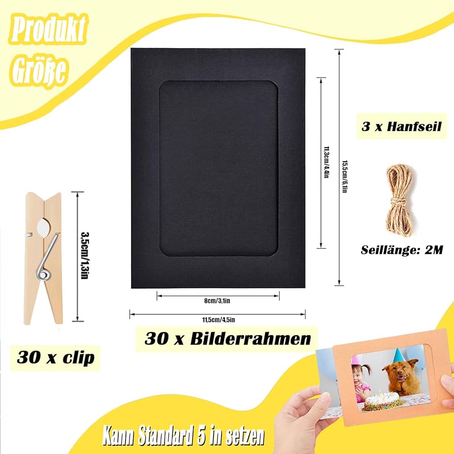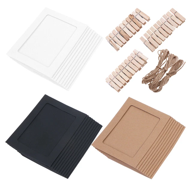QHKLEW 30 Pezzi Cornice Per Foto In Carta Kraft, Cornici Di Carta Kraft Con Clip In Legno E Corda Da Appendere, 6 X 4 Inch Cornici Portafoto In Cartone Per DIY Sospesa