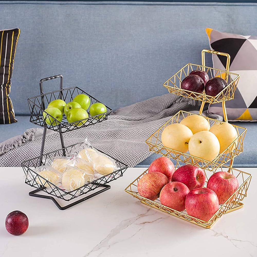 Azatemgo Cesta Per Frutta 3 Ripiani Oro,Portafrutta Metallo 30 X 45 Cm,Fruttiere Durevole E Di Grande Capacità