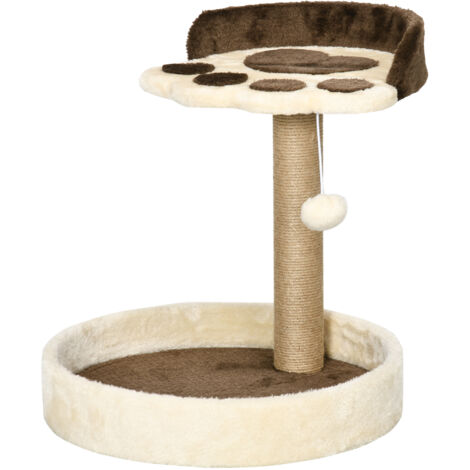 PawHut Albero Per Gatti Con Paletto, Casetta Per Gatti, Tiragraffi E Posatoio, 60x40x108 Cm, Beige | FAVI.it