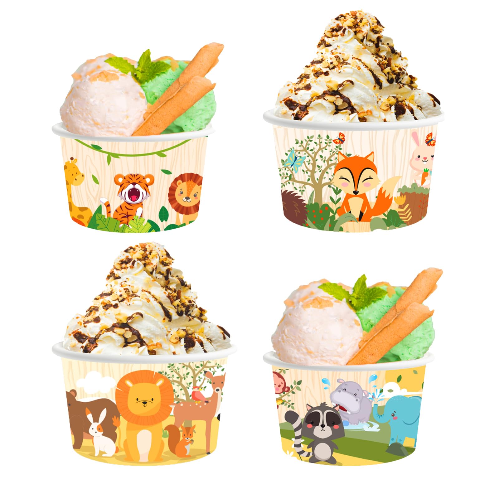 24 Ciotole Di Carta Per Gelato, Tazze Di Carta Per Gelato, Tema Animali Della Giungla, Ciotole Per Gelato, Zoo, Zoo, Snack, Yogurt, Gelato, Dessert, Gelato, Gelatina : Amazon.it