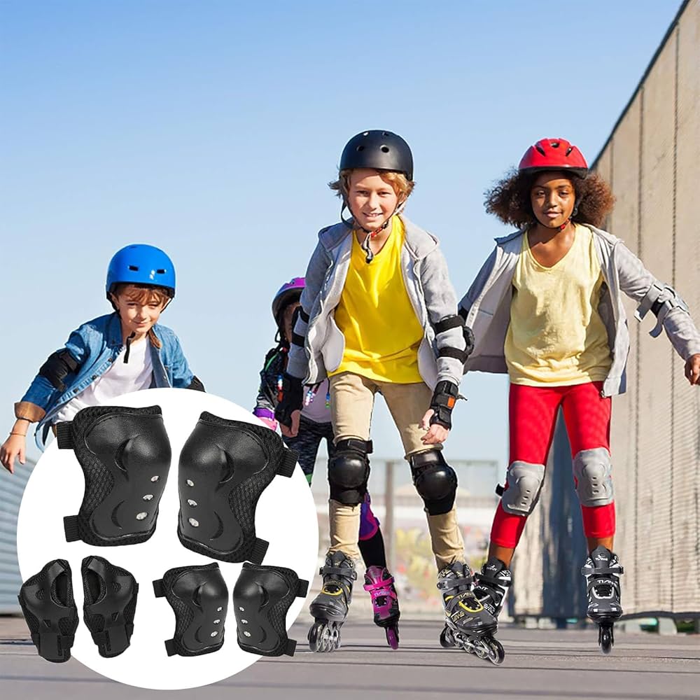 Set Di Coperture Protettive Per Ginocchiere Per Bambini, 6pc Kit Protettivo Nero Per Bambini, Protezioni Regolabili Per Gomiti E Polsi Da Skateboard, Adatto Per Pattinaggio E Pattini A Rotelle