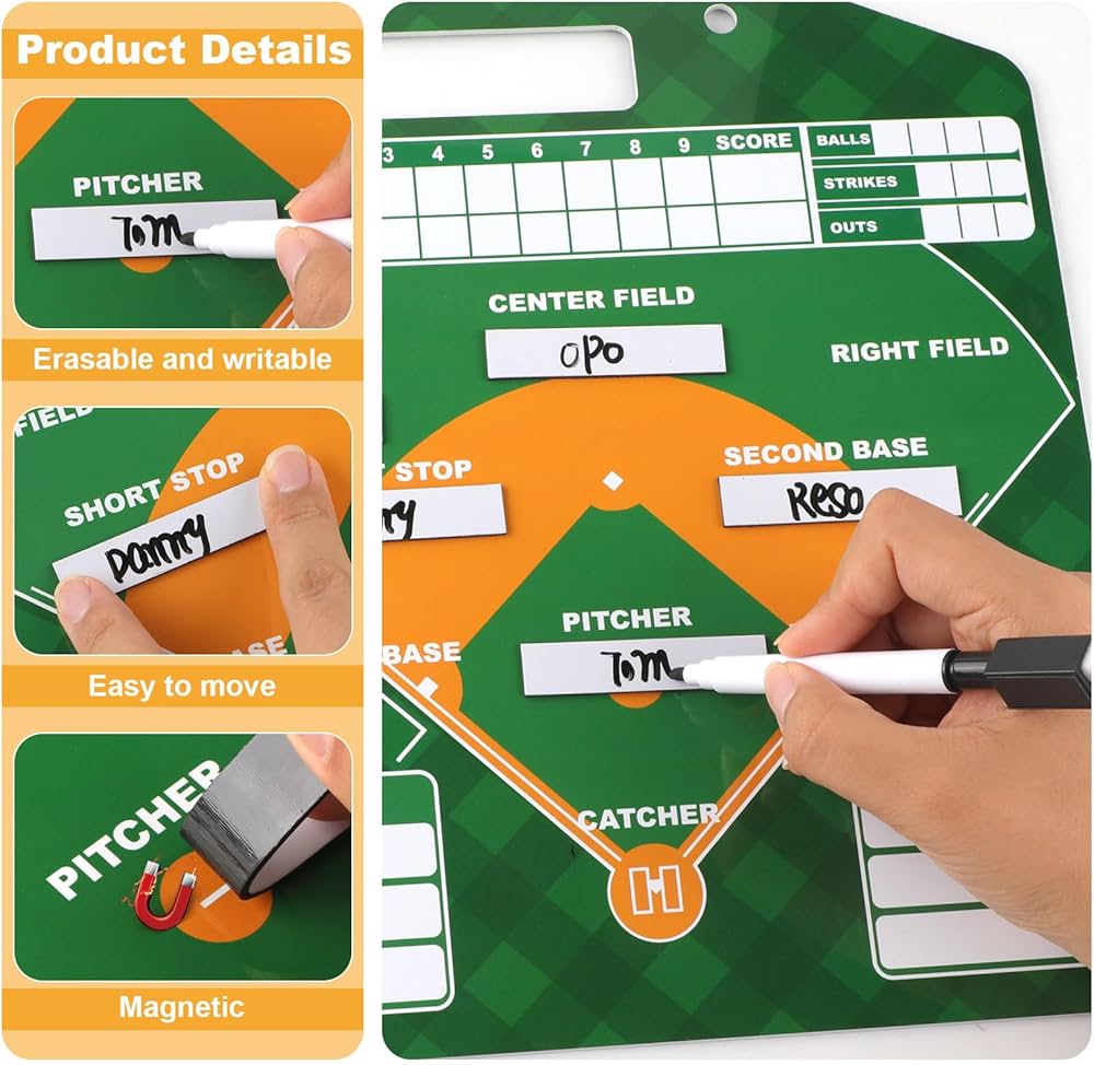 Tabellone Magnetico per La Formazione di Baseball per Allenatori Carte per 4282 ; MPN. Non applicabile ; Brand. SODIAL ; Descrizione. 4.9 ; Spese spedizione. 5.0 Strumento utile: le nostre schede di gamma di softball sono portatili e possono essere appese al muro, non occupare molto spazio, quindi puoi facilmente portarle altrove, pianificare le partite e organizzare la tua squadra di conseguenza in qualsiasi momento. Design a doppia faccia: una parte determina l'ordine di gioco del giocatore e i record degli obiettivi, e l'intero layout del campo è dall'altra parte, rendendo più facile per gli allenatori formulare schemi e comunicare rapidamente con i giocatori, aiutare le squadre a sviluppare giochi efficaci e pianificare l'allenamentosessioni. Il set perfetto è l'ideale per aiutare gli allenatori e i giocatori a progettare accuratamente strategie di gioco e apportare modifiche agli schemi. 30 strisce magnetiche con nomi vuoti, che possono riempire i nomi dei giocatori in modo più chiaro e sono sufficienti per la sostituzione Etichette Con Nomi Speciali Il Mio Playbook Del Basket: Per Gli Allenatori Di Tutte Le Categorie Etichette Personalizzate Da Stampare Materiale premium: questo portablocco da baseball è realizzato in materiale PVC, che è resistente, duraturo, non facile da deformare o rompere, ben realizzato e facile da scrivere e cancellare.