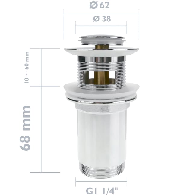 Funzione Push Open per una facile apertura dello scarico. Valvola di scarico: adatta per lavabi comuni | assicura uno scarico dell'acqua controllato | Con semplice funzione di apertura a pressione per chiudere lo scarico, per esempio B. acqua nel lavandino Piletta Di Scarico Per Lavabo Cornat Valvola Di Scarico Per Lavabo, 1 1/4, 66 Mm, Con Piletta Di Scarico Lavandino Le migliori offerte per Valvola di scarico Cornat per lavabi - 1 1/4 di pollice AG - 66 mm con ... sono su Confronta prezzi e caratteristiche di prodotti nuovi e usati Molti articoli con consegna gratis La valvola di scarico consente uno scarico regolare dell'acqua nel lavandino. Parte superiore della valvola facilmente rimovibile per una facile pulizia. Accessori per il montaggio. Dettagli del prodotto: Connettore: 1 1/4 pollici AG Dimensioni: Ø 66 mm Materiale: metallo Colore: Bianco Caratteristiche del prodotto: Valvola di scarico per uno scarico dell'acqua regolato. Realizzato in metallo resistente. Pure White: il tappo in ceramica bianca si inserisce elegantemente nella ceramica da bagno. Valvola di scarico a pulsante 1 1/4 pollici AG, Ø 66 mm, metallo, bianco Ispirata al minimalismo, la valvola di scarico Cornat di colore bianco attirerà l'attenzione nel tuo bagno! Adatto per lavabi comuni Basta una leggera pressione per aprire lo scarico altrettanto rapidamente. Lo scarico può essere facilmente chiuso a mano grazie alla funzione push-open.