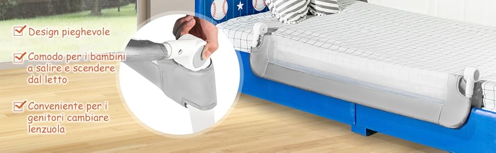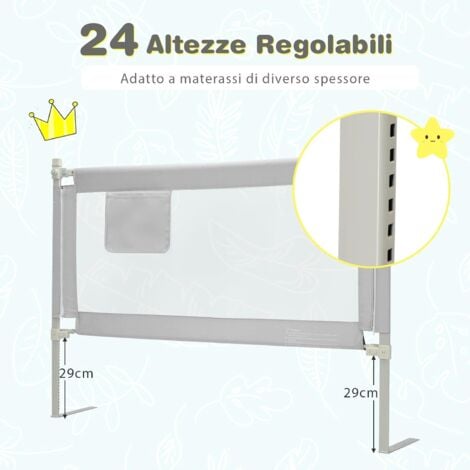 Inoltre, il solido telaio in tubi d’acciaio rivestito in morbido cotone PP e tessuto Oxford delicato sulla pelle assicura non solo stabilità, ma anche comfort e durata. Questo sistema di fissaggio rinforzato tiene il paracolpi in posizione. # Materiali di qualità e sicurezza affidabile # Questa spondina è realizzata con tessuti di alta qualità, delicati per la pelle, resistenti, sicuri e lavabili per un uso prolungato. Nota: il pacchetto include solo un pezzo di sponda; puoi sceglierne di più per creare maggiore privacy. letto paracolpi spondine camerette sponda riciclo protezione lettino cassettiera minimale funzionale Quando non si usa, è possibile ripiegarla con facilità. # Facile da installare e usare # Dotata di istruzioni dettagliate, è facile da montare senza bisogno di attrezzi. Barriera Per Letto Letto Sponda Per Letto Per Bambini Da 178 Cm, Per Letti Queen E King Size E Letti Singoli, Extra Lunghe, Per La Sicurezza Dei Bambini, Sponda Laterale Paraurti Extra Alta Barriera Letto 200x200 Il pannello in rete traspirante offre una buona ventilazione e visibilità. Le gambe di supporto a forma di T possono essere fissate al letto di legno con viti. Caratteristiche: Alta robustezza e stabilità grazie alla struttura in metallo Dotato di maniche in cotone PP anti-collisione Protegge i bambini da infortuni grazie agli angoli arrotondati sicuri Facile e sicuro da installare sul telaio del letto Include una cintura di fissaggio Y regolabile Tessuto premium con una buona resistenza all’usura e un tocco delicato sulla la pelle Rete ad alta elasticità, traspirante e visibile per una maggiore sicurezza Facile da pulire con una copertura rimovibile e lavabile Dati tecnici: Colore: Bianco/Grigio Materiale: Metallo, Tessuto Oxford, Cotone PP Dimensioni Complessive: 105 x 38 x 43 cm / 120 x 39 x 42,5 cm / 152 x 34 x 42 cm (L x P x A) Peso Netto: 1,7 kg / 1,9 kg / 2,1 kg Contenuto della confezione: 1 x Sponda per letto 1 x Cinghia Regolabile a Forma di Y 1 x Istruzioni # Adattabilità universale # Adatto a vari tipi di letti, inclusi letti in metallo, in pelle, in legno, questo paracolpi si adatta a lettini per bambini, letti singoli, letti matrimoniali per un uso versatile. Dotato di una cintura di fissaggio Y regolabile, può essere inserito sotto il materasso e bloccato con la fibbia per garantire la sicurezza. Si adatta a letti di qualsiasi tipo e dimensione. # Design pieghevole conveniente # Con una lunghezza di 105 cm / 120 cm / 152 cm, questa barriera per lettini offre ai tuoi bambini la massima protezione e un ambiente di sonno sicuro.