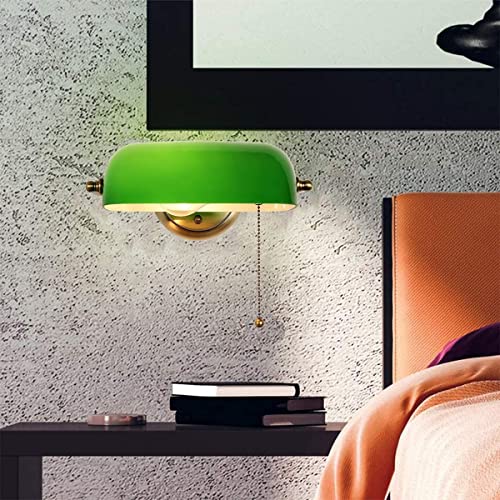 FIRVRE Verde Lampada Da Scrivania In Vetro Per Lettura E27 Lampada Da Tavolo Classica Con Porta USB Di Ricarica Wireless Interruttore A Catena In Ottone Vintage Luce Da Comodino Per Casa Ufficio