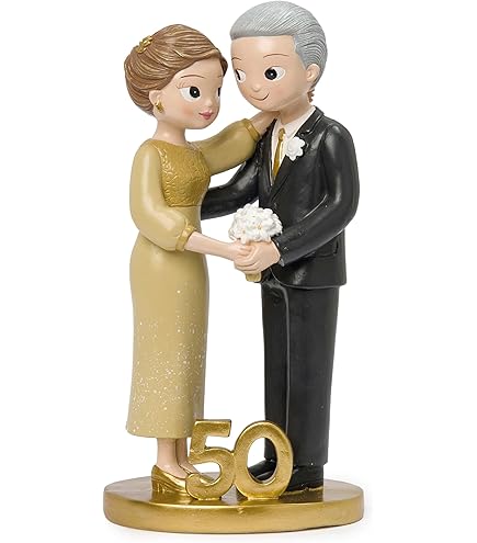 Materiale resistente: realizzato in poliresina di alta qualità (pietra artificiale), questa statuetta è durevole e stabile. Decorazione versatile: ideale come decorazione per torte, decorazione da tavolo o regalo per la coppia di allegri. Statuine Sposi Per Torta Nuziale Statuetta Decorativa Per Matrimoni In Oro 50 Anni 55 Cm Statuette Per 50 Anni Matrimonio Dimensioni perfette: con un'altezza di circa 5,5 cm, la statuetta si adatta perfettamente a qualsiasi torta nuziale o come decorazione da tavolo. Indimenticabile: questa statuetta per nozze d'oro è più di una semplice decorazione. La statuetta è ideale per la tavola, come ricordo o come sorpresa speciale per la coppia di sposi dorati. Design simbolico: la coppia di sposi incarna 50 anni di percorso di vita comune. Perfetto come decorazione per torta o tavolo per il matrimonio d'oro.