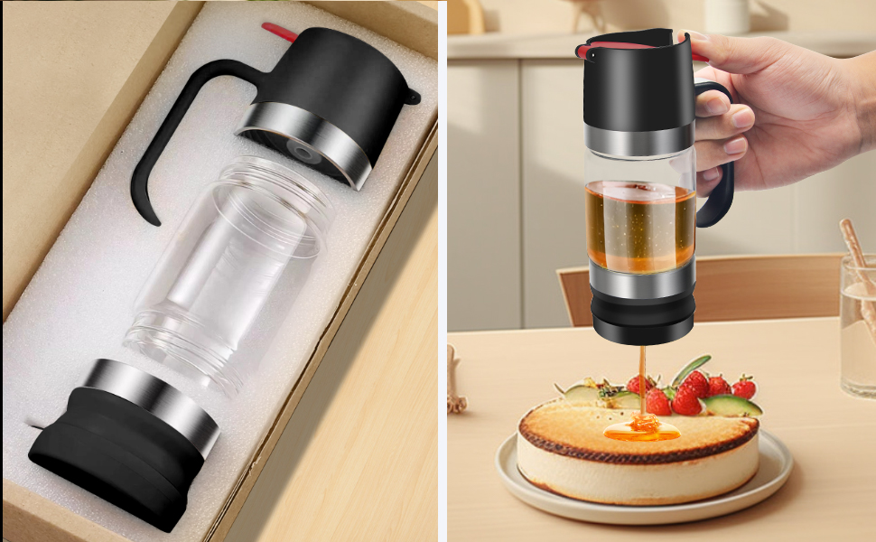 Versatile e confortevole: non solo per il miele, ma anche per sciroppo d'acero, sciroppo di caffè o altri dolcificanti liquidi. Spende circa un cucchiaino di miele per pressione, in modo da poter controllare facilmente la dimensione della porzione, sia ch È un ottimo strumento per gli amanti del miele e uno strumento pratico per coloro che amano cucinare con dolcificanti liquidi; Facile da pulire e da riempire: il barattolo per miele ha un coperchio rimovibile e una parte inferiore rimovibile per una facile pulizia e ricarica. Design anti-scivolo per un'esperienza senza sporco: la valvola in silicone sul fondo del dispenser di miele garantisce un flusso uniforme del miele ad ogni pressione e si ferma immediatamente al rilascio per evitare gocce appiccicose e disordine sul piano di lavoro Spende circa un cucchiaino di miele per pressione, in modo da poter controllare facilmente la dimensione della porzione, sia che tu aggiunga il miele nel tuo tè o sciroppo nei tuoi pancake; Scivolano Con Dispenser Kagodri Dispenser Per Miele/sciroppo, In Vetro Antigoccia, Dispenser Per Miele E Olio D'oliva Con Supporto, Dispenser Per Sciroppo, Barattolo Per Condimenti Per Utensili Da Cucina Dosatore Per Miele Struttura in vetro durevole: a differenza delle alternative in plastica, questo contenitore per sciroppo è realizzato in vetro di alta qualità, che sembra elegante e durevole su qualsiasi bancone della cucina o tavolo da pranzo;