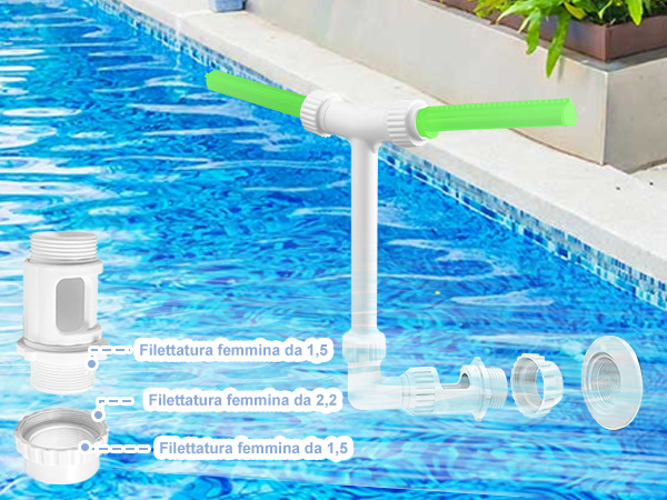 Piscina Fuori Terra Fontana Per - Raffreddamento Per Piscina Spray Head Waterfall Pool Cooler Decorazione Per Esterni 88766508 Fontane A Cascata Per Piscina Design Della Fontana A Doppio Ugello: Le nostre fontane per piscina sono caratterizzate da un esclusivo design a doppio ugello che integra due cascate attraverso un unico tubo centrale, consentendo di ottenere una cascata più grande nella piscina. Design Della Fontana A Doppio Ugello: Le nostre fontane per piscina sono caratterizzate da un esclusivo design a doppio ugello che integra due cascate attraverso un unico tubo centrale, consentendo di ottenere una cascata più grande nella piscina Direzione E Altezza Della Cascata Regolabili: l'altezza e la direzione dei tubi orizzontali e verticali possono essere regolate a 360°, consentendo un getto trasversale o parallelo per adattarsi a una varietà di dimensioni e forme della piscina. Il suono del flusso d'acqua è molto rilassante e con le increspature che crea sulla superficie dell'acqua, rende il tempo in piscina ancora più divertente. Applicazione: La fontana si adatta alla maggior parte dei raccordi filettati da 1,5'' e 2,2'', perfetti per le piscine e i laghetti da giardino, per aggiungere decorazione al vostro giardino. Facile Da Installare: La fontana a cascata per piscina non richiede alimentazione supplementare e può essere installata in meno di 5 minuti collegandola direttamente alla porta di ritorno della pompa. Quando si cambia la direzione, assicurarsi che l'ugello sia rivolto verso la piscina.