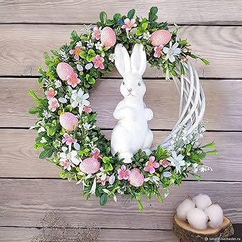 Ghirlanda Per Porta, Coniglietto Con Fiocco E Fiore, Decorazione Da