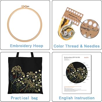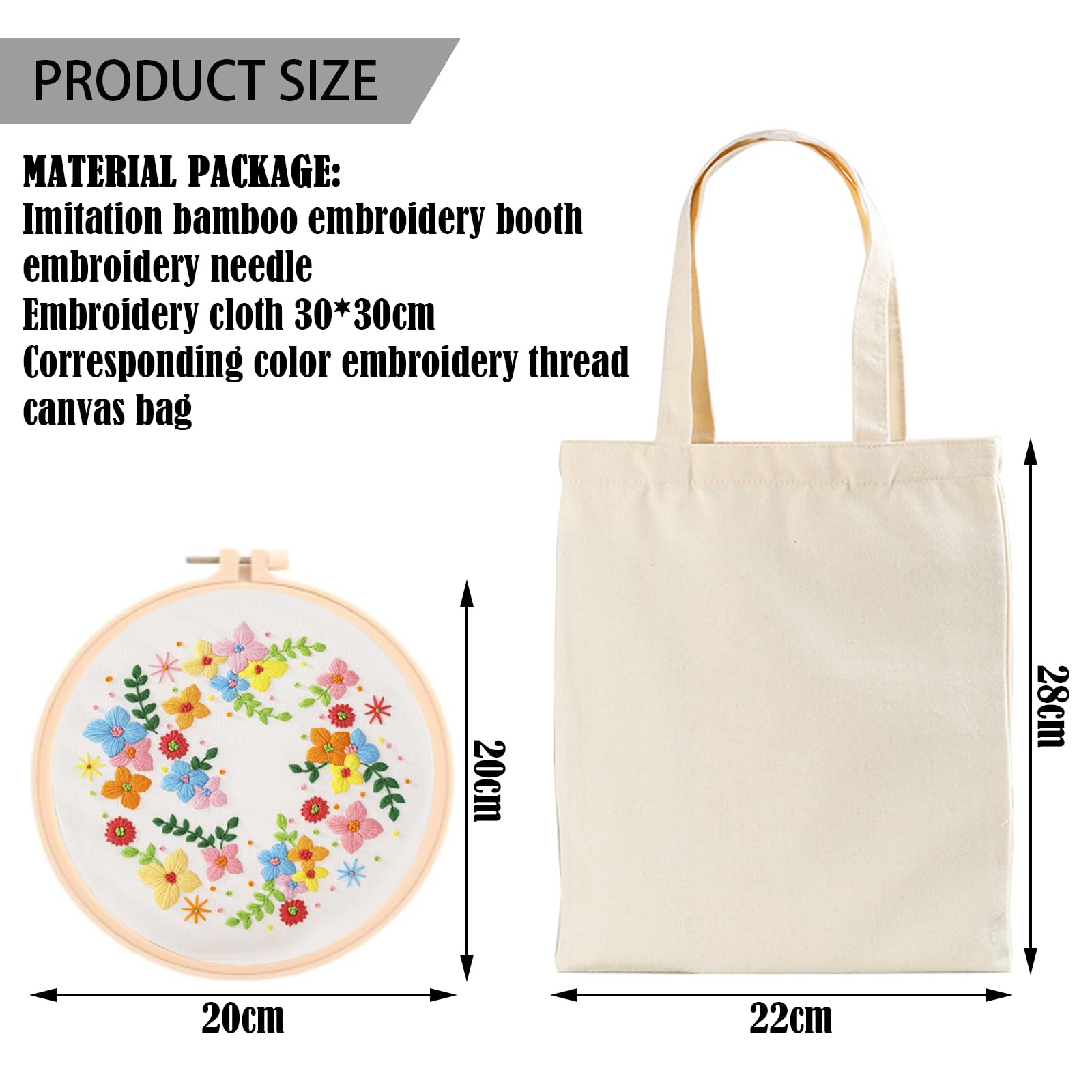 Namvo Kit Da Ricamo In Tela Per Principianti Con Motivo E Istruzioni, Include Borsa Da Ricamo Con Motivo Floreale, Cerchi Da Ricamo In Bambù, Fili Colorati E Aghi