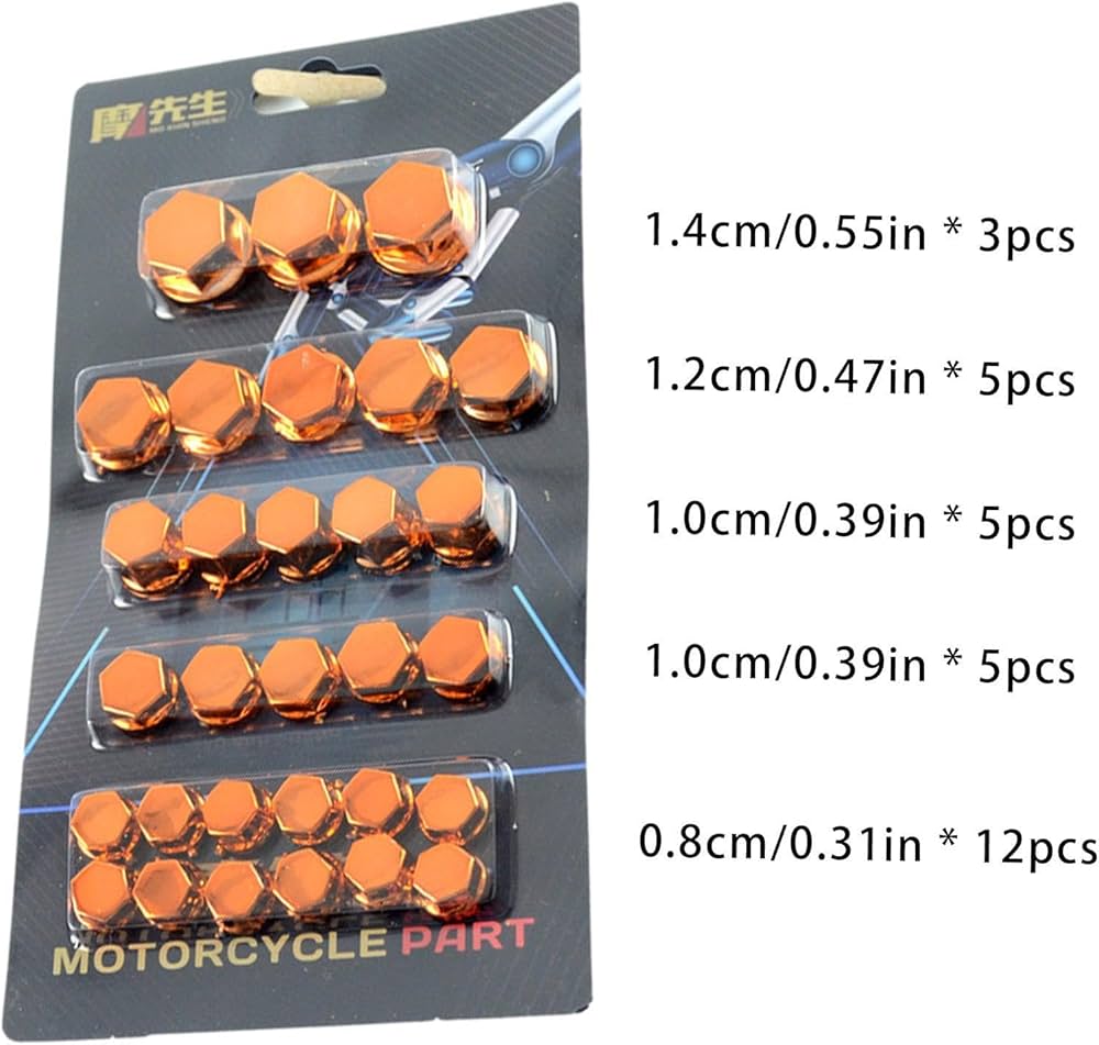 7 colori per la tua scelta, una grande decorazione e rende la tua moto più elegante ed eccezionale. Faremo del nostro meglio entro 24 ore per rispondere. Questa è una scelta perfetta se hai bisogno di articolo di qualità. bulloni davidson harley sportster tappi pezzi copri cromati motore --MATERIALE DI QUALITÀ PREMIUM Il cappuccio del dado del bullone della motocicletta è realizzato in plastica di alta qualità con placcatura elettrolitica per resistenza alla ruggine e durata. Utile. Materiale di qualità: plastica di alta qualità con placcatura elettrolitica per resistenza alla ruggine e durata. Tappi Di Protezione Per Bulloni Copribulloni Per Ruote 17mm Flaconi 20 Copridadi Ruota Bulloni E Dadi Usando una lavorazione artigianale e rigoroso controllo di qualità, prestazioni stabili e alta affidabilità. --MONTAGGIO UNIVERSALE Misura universale per la maggior parte delle motociclette, moto elettriche, scooter. Dimensioni selezionabili: il cappuccio del bullone della motocicletta include dadi di diverse dimensioni totalmente 3 pezzi, economico e pratico. Può essere utilizzato per coprire il motore, la trasmissione e altri bulloni principali, il che è comodo e affidabile da usare. Facile da usare: include totale di 3 dadi di diverse dimensioni, economici e pratici.