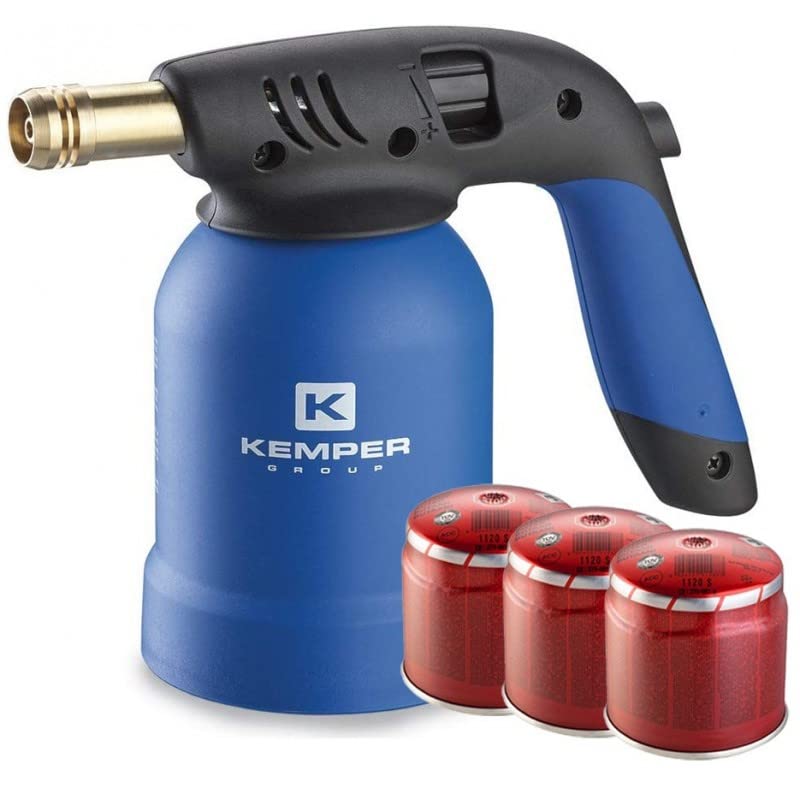 Lampada Per Saldare Cannello Accendi Fuoco Kemper + 3 Bombole Gas