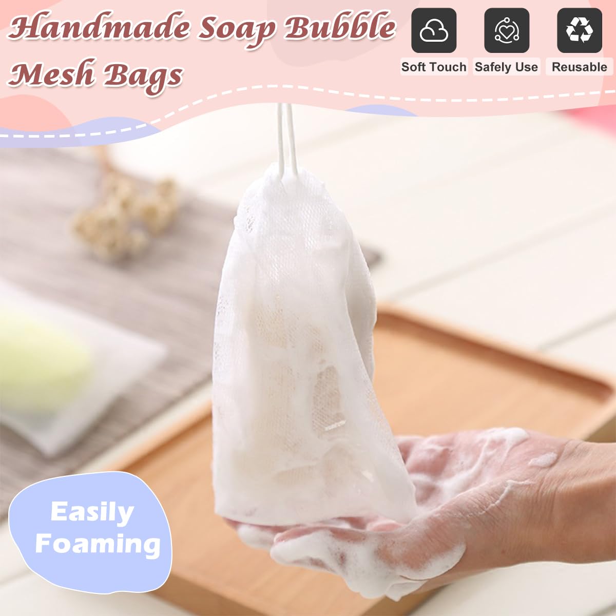 6 Sacchetti Per Sapone Per Doccia, Realizzati A Mano, In Rete A Bolle