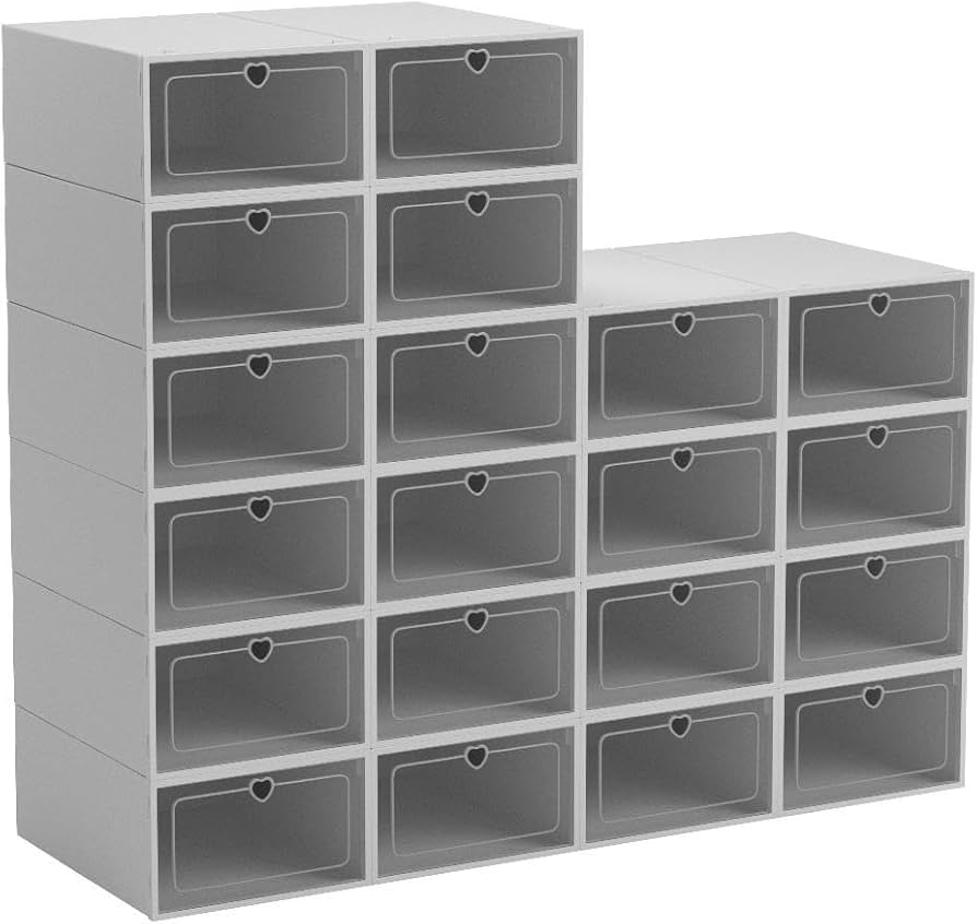 Confezione Da 20 Scatole Trasparenti Per Scarpe, Impilabili, In Plastica, Per Armadi, Scarpiera Pieghevole E Portabagagli, Salvaspazio, Per Camere Da Letto, Colore Bianco