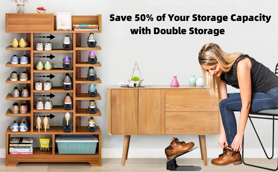 Set di 4 portascarpe regolabili, 3 ripiani regolabili in altezza, salvaspazio, organizer per scarpe, organizer regolabile, scomparti salvaspazio a doppio strato Ampiamente utilizzato: il portascarpe per armadio ha una buona compatibilità e di solito può offrire un posto adatto per appartamenti, pantofole, scarpe da ginnastica, scarpe in pelle, scarpe sportive e tacchi alti. 【Salvaspazio】Il design a doppio strato del portascarpe può contenere due paia di scarpe all'interno dello spazio di un paio di scarpe, aumentando il vano di stoccaggio della scarpiera del 50% e ogni scarpa ha il proprio spazio indipendente per garantire che non venga schiacciata e danneggiata Il carrello porta scarpe sfrutta completamente l'altezza della scarpiera e risolve efficacemente il problema delle scarpiere affollate e della mancanza di spazio nella scarpiera. Design regolabile in 3 livelli, l'altezza dell'organizer per scarpe è regolabile in modo flessibile, da 8,6 cm a 18,6 cm, design semplice è facile da montare. Portascarpe Trasparente Thnkstaps Portascarpe Salvaspazio, , Porta Scarpe Salvaspazio Da Armadio Organizer Per Scarpe Supporto per scarpe regolabile: 26 x 22 x 18 cm.