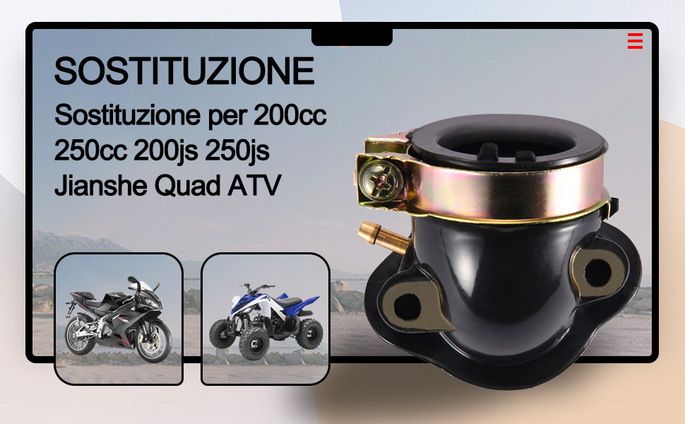 Passaggio del collettore di aspirazione: circa 20 mm (tutte le dimensioni corrispondono al componente originale). È quindi giunto il momento di sostituire questo componente, in quanto le crepe di solito creano aria secondaria nel tratto di aspirazione, causando un appiattimento della miscela. Specificazioni: - Tipo di materiale: gomma - Tipo di articolo: Tubi d'aspirazione & collettori - luogo di Orgin: Cina - Numero Cilindri: 1 Cilindro - Nome del Modello: GY6 -50 - Marca: QIMORE - condizione: marca nuovo - Cilindrata (ml): 50CC Collettore Di Aspirazione Per Scooter Per Scooter Cinese GY6 Nota: è normale che il rivestimento in gomma sul lato inferiore del collettore di aspirazione non sia continuo nei punti di avvitamento. Tuttavia, l'articolo non è adatto ai modelli TSDI! Le conseguenze sono temperature di combustione troppo elevate, funzionamento instabile del motore e perdita di potenza. Tuttavia, questo non ha un effetto negativo sul prodotto. Collettore di aspirazione di qualità superiore di primo impianto per motori Peugeot.