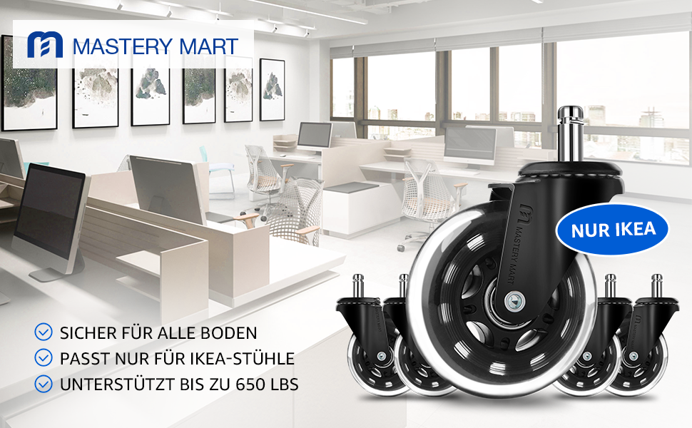 Mastery Mart Set Di 5 Ruote Per Sedia Da Ufficio, 10 Mm X 22 Mm, Ruote Per Pavimenti Duri, Per Sostituire Tappetini Protettivi Per 1KEA, Grigio