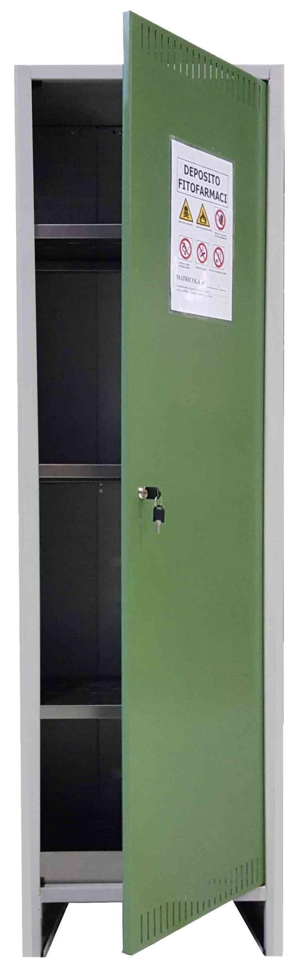 Armadi Zincati Per Stoccaggio Fitofarmaci - Di Camillo Serbatoi S.r.l INFO PRODOTTO ARMADIO DEPOSITO FITOFARMACI 'PRATIKO' Smontato. ARMADIO IN METALLO PER FITOFARMACI 2 ANTE CM Struttura in lamiera di acciaio pressopiegata a freddo con rivestimento superficiale di finitura, spessore 6/10, ripiani e vaschetta raccolta 7/10. Corredato da 3 ripiani zincati forati, fermi ante, arresto battente, vaschetta raccolta zincata 11 lt. Tipo di prodotto: CABINET Marca: Senza marca generico Colore: Grigio, Verde 2 ante - cm 100 x 40 x h 179,5 alto Confezione da 1 Pezzi Risponde ai dettami D.P.R. 290/2001, direttiva 2009/128 CE, D.LGS 150/2012, D.M. 22-01-2014. Chiusura a chiave con serratura, struttura grigia, porta verde.