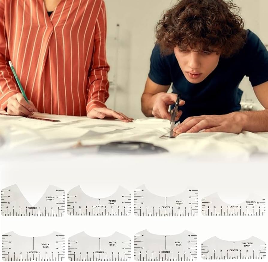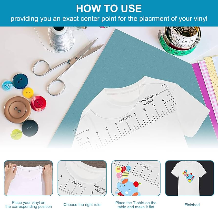 RYAN 8 Pezzi Guida Per T-shirt Righello Di Allineamento Con 1 Rotolo Righello Strumenti Per L'allineamento PVC Righello Set Di Strumenti Per DIY Adulti Per T-shirt Girocollo E Scollo A V