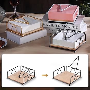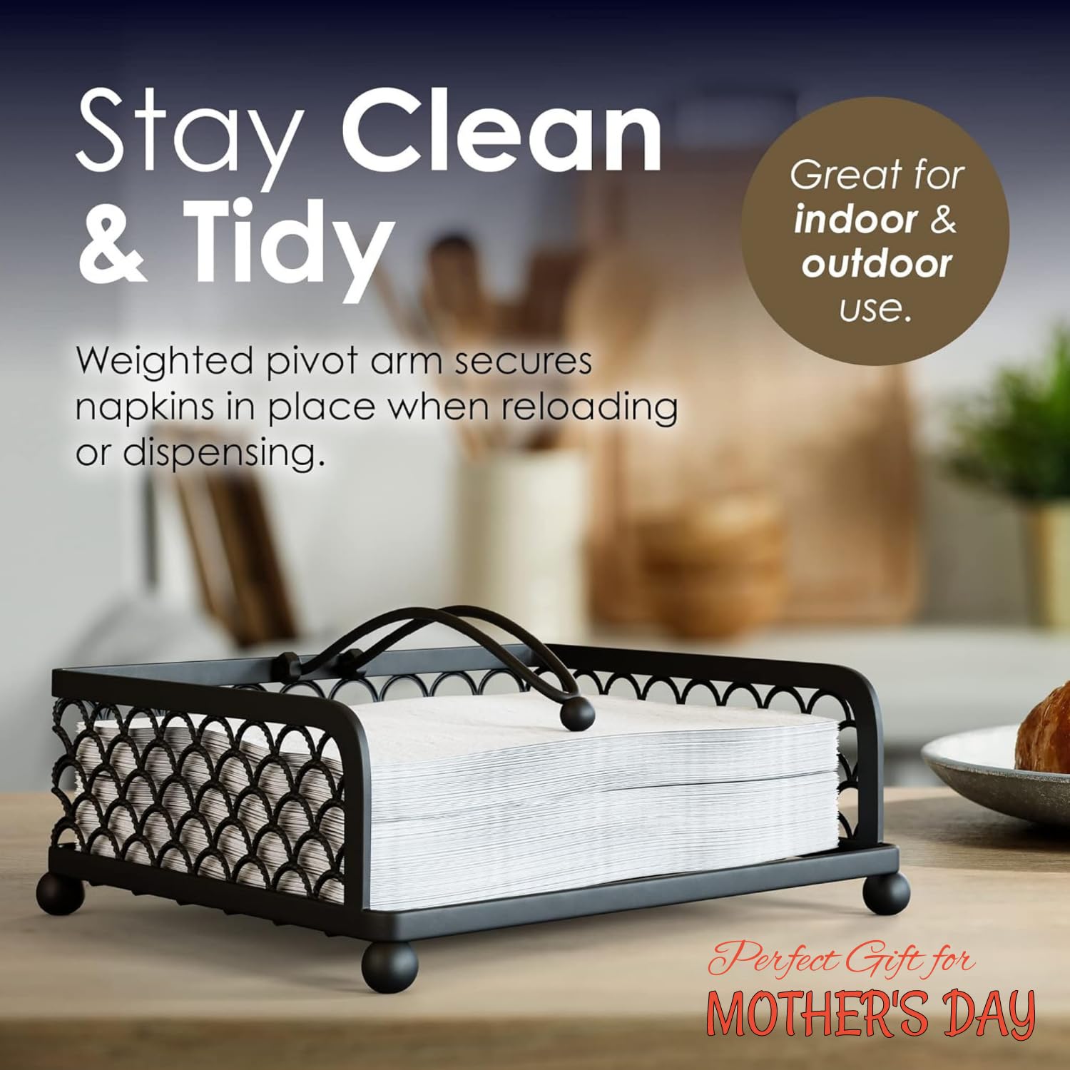 In Legno Fourmor Elegante Portatovaglioli Piatto Con Braccio Dispenser - Per Tavolo, Cucina, Piano Di Lavoro E Tavolo Da Esterno - Portatovaglioli Portatovaglioli Da Tavola Quadrati Scozzesi In Metallo Porta Tovaglioli
