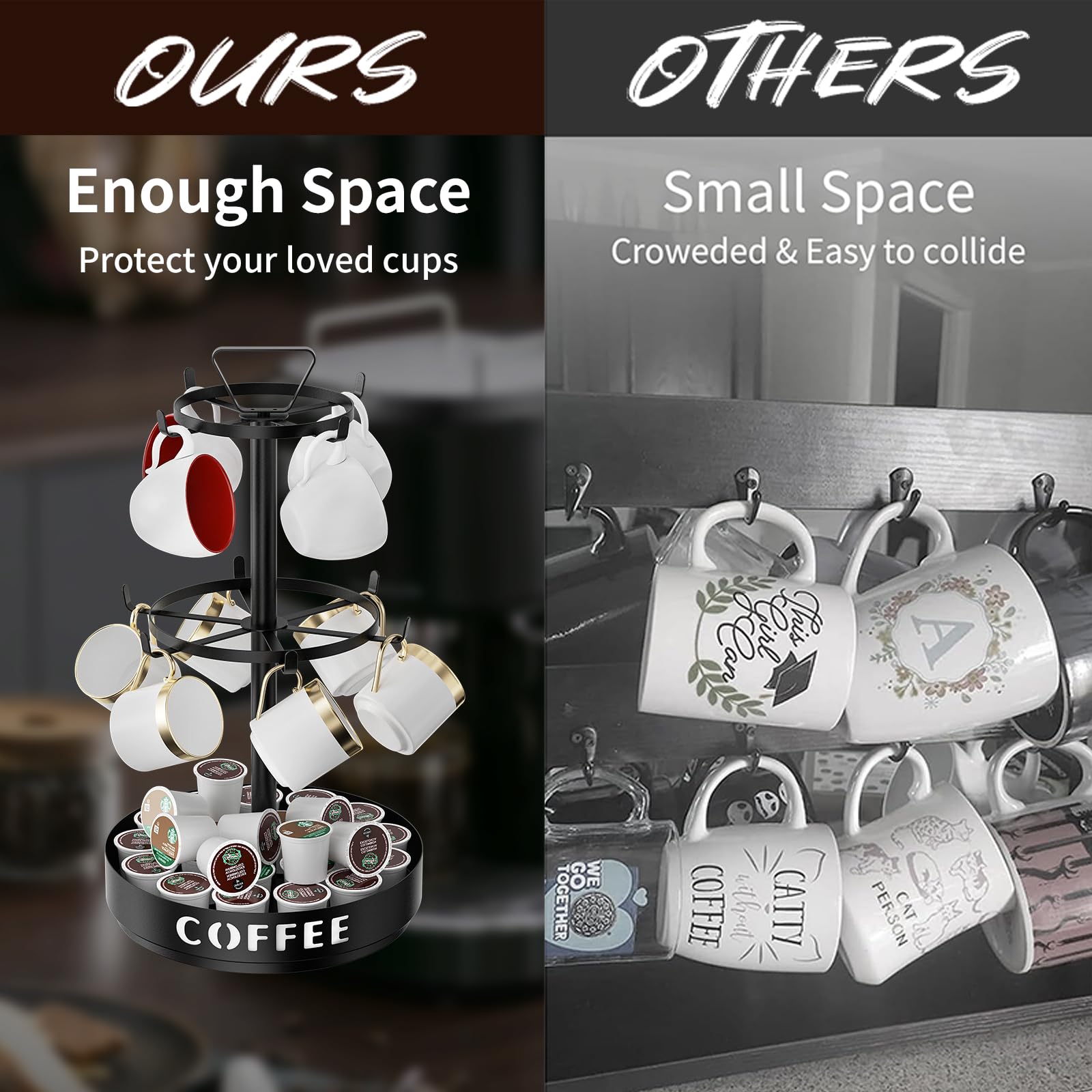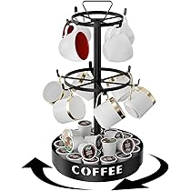Supporto Girevole In Metallo Nero Per Tazze Da Caffè A 2 Ripiani