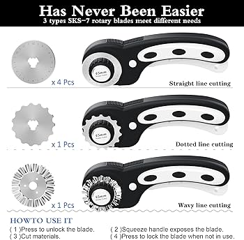 Cutter Per Tessuti, Taglierina Rotativa 45 Mm Circolare, Coltello Rotante Per Cucire, Taglierine Rotanti, Patchwork Cucito Taglierina, Pulsante Di Blocco Ergonomico, Taglia Con Precisione