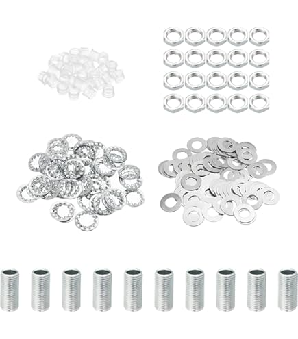 Dadi Filettati Per Tubi Lampadari YOKIVE 200pz Dadi Filettati Per Tubi Lampade M10 Viti Filettate Esagonali Con Rondelle Ideali Per Progetti Illuminazione Soffitto Fai Da Te Attrezzi Fai Da Te È semplice da usare: prima si inseriscono le rondelle nel tubo √NOTA BENE - Si prega di consultare le misure prima dell'ordine se si è preoccupati per le dimensioni. √MATERIALE AFFIDABILE - Realizzato in materiale ferroso, superficie rifinita con rivestimento in zinco, ha una buona forze, resistenza alla ruggine e alla corrosione, robusta e durevole. Dadi M10 YOKIVE 120pz Dadi Filettati Per Tubi Lampade M10 Viti Rondelle M10 √COSA RICEVI - La confezione comprende 40 dadi esagonali M10 pezzi con filettatura M10x1,0 mm, dimensioni esagonali 14 x 3 mm (larghezza*altezza) e 40 rondelle pezzi con dimensioni 10,5 x 17 mm (0,41 x 0,67 pollici). √MULTIUSO - Ampiamente utilizzato per fissare i tubi di filettatura per l'assemblaggio, la sostituzione e la riparazione di lampadari, plafoniere o altri lavori di illuminazione fai-da-te.