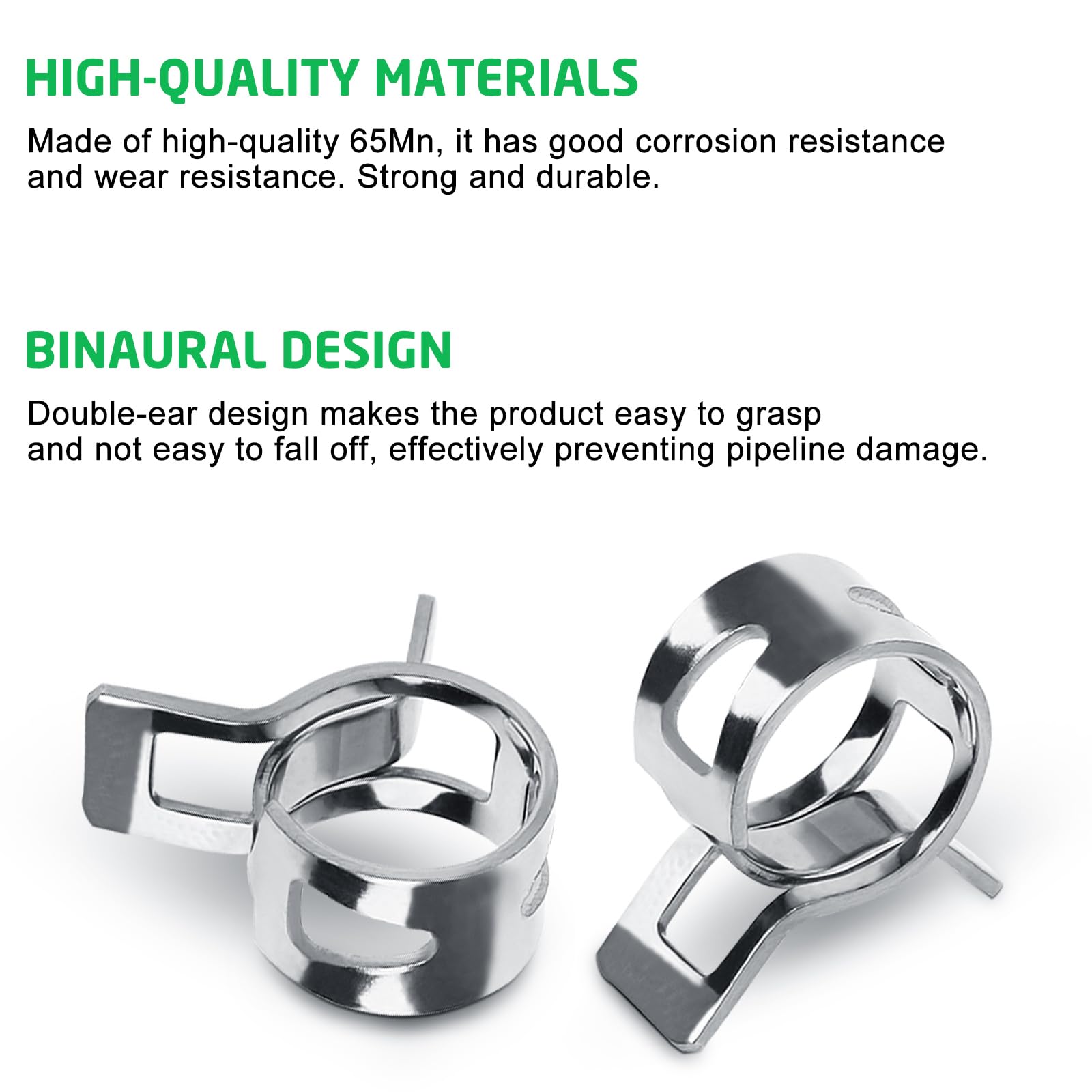 Materiale: i nostri morsetti per tubi a molla sono realizzati in lega di acciaio, resistente all'usura, non facile da ossidare e non facile da deformare. Adatto per tubi del carburante, tubi del carburante, tubi dell'acqua, tubi dell'aria, tubi in silicone, tubi dell'olio, tubi di scarico o lavatrici o lavastoviglie, ecc. - La pinza può essere utilizzata anche in automobili, agricoltura, aviazione, movimentazione, navi, fabbriche ed edifici Questo design mantiene i bulloni lontani dalla superficie di serraggio, facilita il serraggio e migliora la tenuta. 3. Facile da usare: l'installazione è semplice e veloce. Descrizione: 1. Materiale: i nostri morsetti per tubi a molla sono realizzati in lega di acciaio, resistente all'usura, non facile da ossidare e non facile da deformare. 2. Design: il morsetto a molla è un elemento di tenuta autobloccante che collega il tubo al raccordo per evitare perdite di liquido. Il morsetto ad anello interno a 360° è progettato con precisione e robusto per resistere a determinate pressioni e tensioni. Contenuto della confezione: 15 pezzi x fascetta a molla tipo di azione Ha buone prestazioni di tenuta e può fissare saldamente il tubo per evitare allentamenti e perdite. Contenuto della confezione: 15 fascette stringitubo tipo a molla Colore: argento; materiale: lega d'acciaio; trattamento superficiale: rivestimento in zinco cromato; diametro interno: 6 mm/0,24; dimensioni morsetto: 11,5 mm x 11,5 mm x 6 mm/0,45 x 0,45 x 0,24 (lunghezza x larghezza x altezza). Trattamento superficiale: rivestimento zinco-cromo Diametro interno: 6 mm. Tubo Benzina 8mm 423800c Fascetta Per Tubo Benzina D.6mm - Raccordi Tubi E Fascette - A Fascette Stringitubo Inox Dimensioni morsetto tubo: 11,5 mm x 11,5 mm x 6 mm (lunghezza x larghezza x altezza). Questi morsetti hanno una forte flessibilità e resistenza e possono garantire connessioni strette affidabili stringendo saldamente il tubo sul raccordo. 4. Ampia applicazione: i morsetti per tubi vengono utilizzati per stringere e sigillare le interfacce, adatti per tubi del carburante, tubi dell'aria, tubi dell'acqua, tubi del carburante, tubi per vuoto in silicone, utensili per macchine, antincendio e altre attrezzature meccaniche, ecc. Specifiche: Colore: argento.
