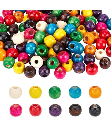 Feein, 200 Perline Colorate Rotonde In Legno Per Lavori Artistici, Distanziatori Sciolti Per La Primavera, Ghirlande E Decorazioni Per La Casa, 7 Misure 8 Mm/10 Mm/12 Mm/14 Mm/16 Mm/20 Mm/22 Mm