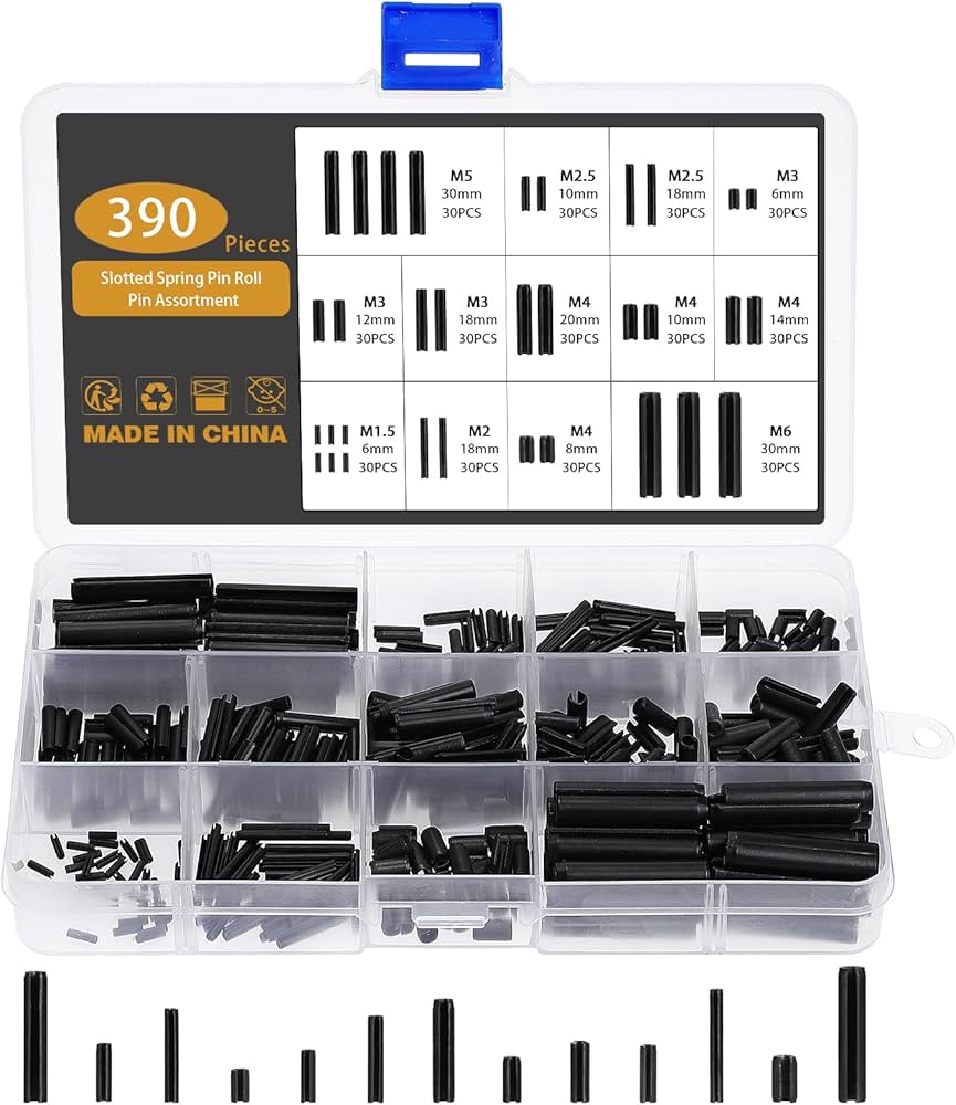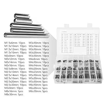 Ampia applicazione: i perni elastici divisi sono ampiamente utilizzati in automobili, macchinari, garage, officine, apparecchiature elettriche, per il posizionamento, il collegamento e il fissaggio tra le parti. -Realizzato in acciaio al manganese ad alta densità, resistente e stabile, la finitura in ossido nero resiste alla corrosione. Tunejoy 390 Pezzi Perno di Tensione a Molla Spine Elastiche Rotoli Perni Intaglio Acciaio al Manganese Assortment Kit M1.5 M2 M2.5 M3 M4 M5 M6 con Scatola Spine Elastiche 390 Pcs Perno Di Tensione A Molla,Perno Con Intaglio, Diviso Spinetta Acciaio Prezzo Portatile: dotato di una scatola di plastica, puoi classificare questi perni a molla in modo organizzato, più comodo da trasportare e da estrarre, trovare facilmente e rapidamente le proprie esigenze Elementi di fissaggio perfetti: la squisita fattura del kit coppiglie offre un'esperienza eccellente, superficie liscia e priva di sbavature, la scelta migliore per il dispositivo di fissaggio Robusto e durevole: i perni per involtini primavera in acciaio al manganese ad alta densità, elevata durezza e finitura in ossido nero stabile resistono alla corrosione, offrono un bell'aspetto e una buona durata. 13 dimensioni 390 pezzi: il kit perni a molla con intaglio include: M1.5*6 M2*18 M2.5x10 M2.5x18 M3x6 M3x12 M3x18 M4x8 M4x10 M4x14 M4x20 M5x30 M6x30 mm, dimensioni complete e quantità sufficiente per soddisfare le varie esigenze Caratteristiche: -Assiale asolato, due estremità hanno smusso, per il posizionamento, collegamento e fissaggio tra le parti.