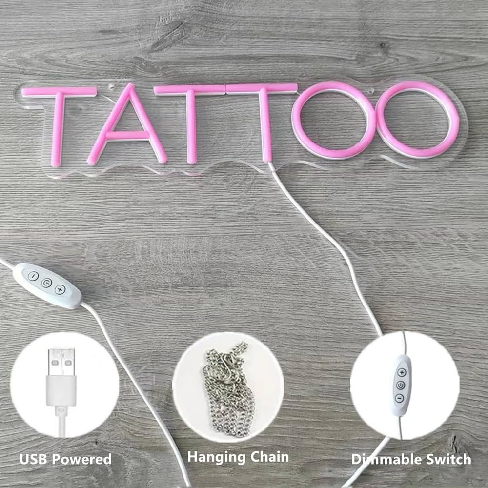 HFHungkeong Dimmable Tattoo Neon Sign,Pink PersonNeon Signs,Reusable Arylic Tattoo Led Sign With Dimmer For Tattoo Salon, Studio, Shop