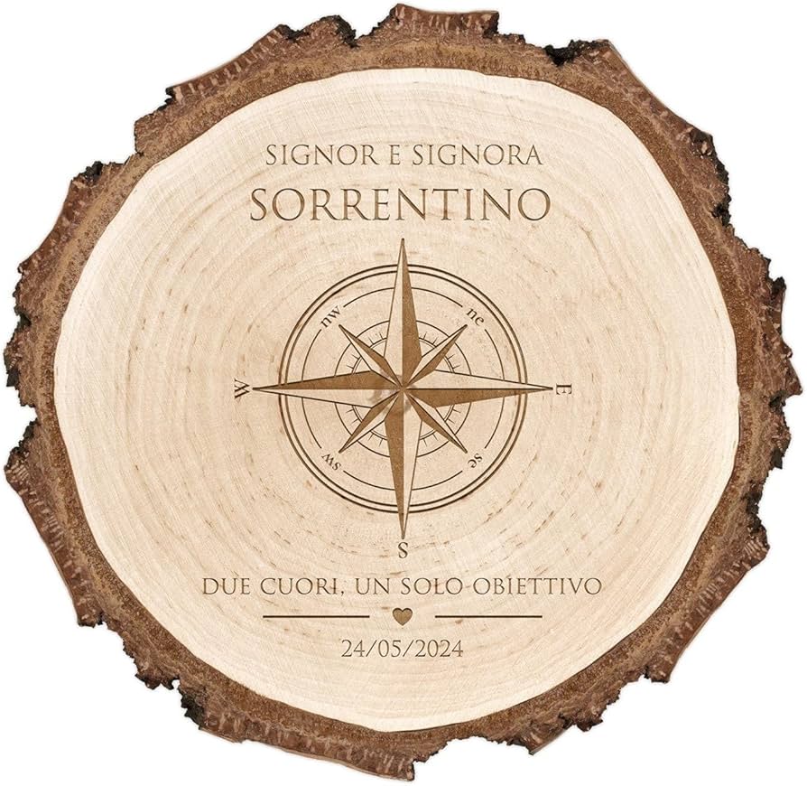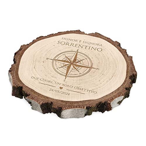 Maverton Fetta Di Legno Personalizzata - Incisione Laser - Diametro Da 16 A 22 Cm - Spessore Da 1,5 A 2,5 Cm - Legno Grezzo - Betulla Con Corteccia - Per La Copia - Rosa Dei Venti