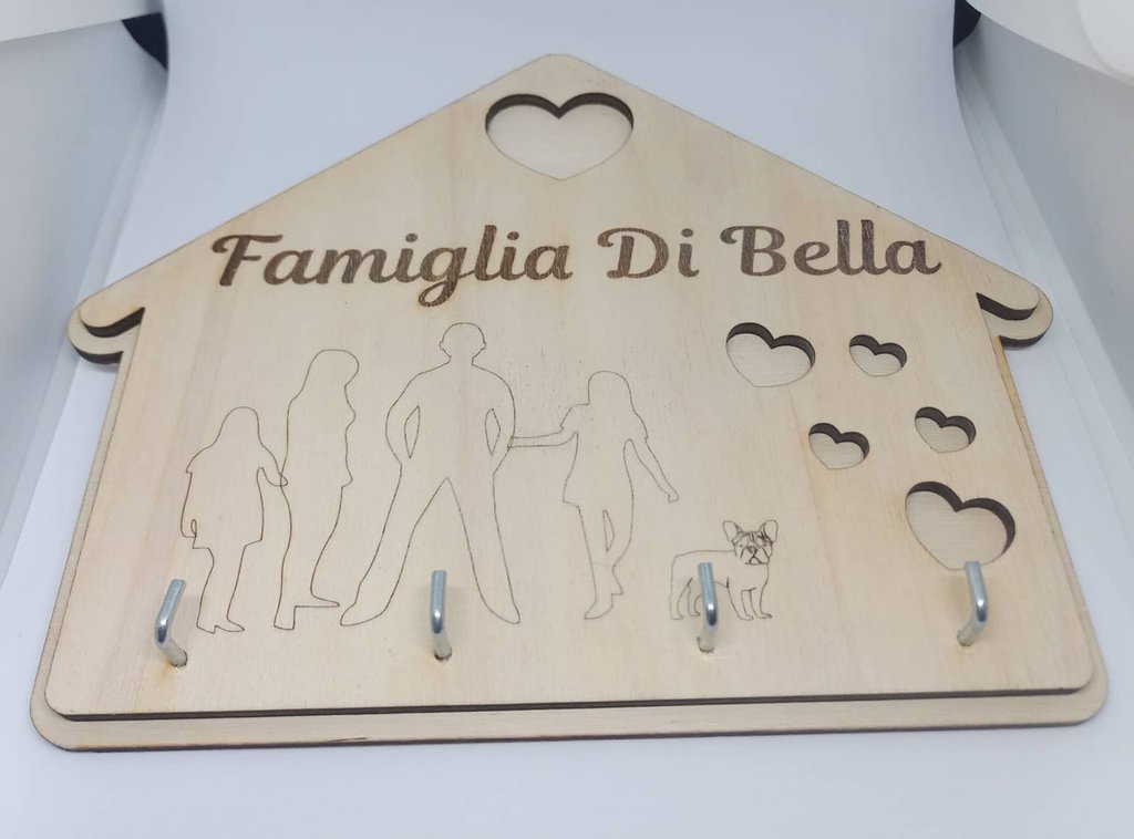 I Nostri Appendichiavi da Muro Personalizzati sono realizzati in Vero Legno Naturale spesso circa 12 mm.Personalizzali per decorare la tua casa in modo decisame Chat WhatsApp Entra Per personalizzare l'oggetto basta compilare i relativi campi, scegliendo numero corrispondente al personaggio (rappresenta l'immagine stilizzata del componente della famiglia) e il Nome da assegnare al personaggio. Tutte le lavorazioni sono effettuate in Italia con le migliori tecnologie di Taglio e Incisione Laser, nel massimo rispetto delle normative europee vigenti. Porta Chiavi Ingresso Casa Appendichiavi Da Parete In Legno Personalizzato Con Nome Nonni Vi Vogliamo Bene Porta Chiavi Personalizzati Personalizzalo con i Personaggi, che Rappresentano i componenti della famiglia, e i relativi Nomi. Realizzato in Vero Legno Naturale da 10 mm.