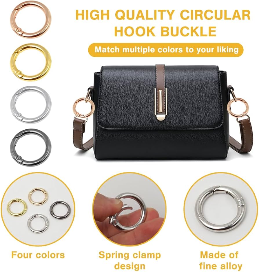 Sixfolo Moschettone Rotondo 28 Pezzi Anelli Moschettone Rotonda In Lega Di Zinco 27mm Anelli A Molla Per Borse Anello Portachiavi Clip Scatto Molla Per DIY Artigianato,Accessori Per Borse,4 Colore