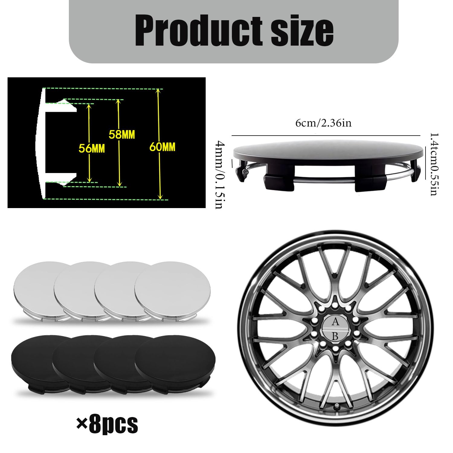 Tappi Coprimozzo Ruota Centrale 4 Pezzi Coprimozzo Ruota Centrale, ID 56mm Diametro Esterno 60mm Coprimozzo Audi