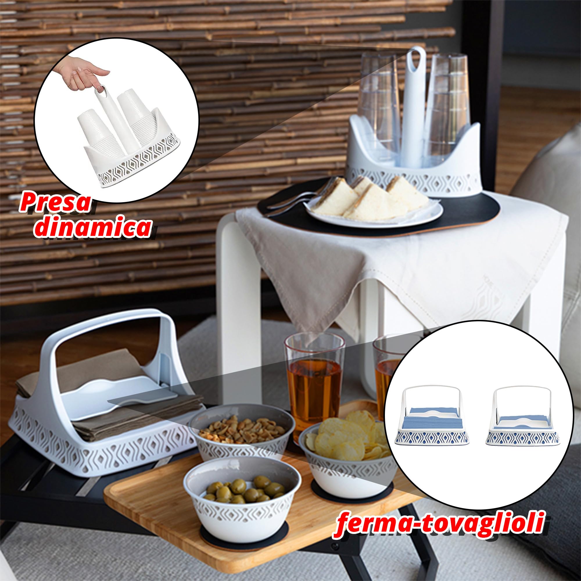 Set Bicchieri Set 3 Pezzi , Portatovaglioli, Porta Scottex In Legno Decorato White Gardening | Lupia Porta Bicchieri Set 3 pezzi composto da Porta Tovaglioli, Porta Bicchieri e Porta Rotolo realizzati in metallo 2 colori ass tortora e bianco Dimensione prodotti: Porta Tovaglioli 20*20*8 - portabichieri 22*11 - portarotolo 16*16*33 Set 3 pezzi composto da Porta Tovaglioli, Porta Bicchieri e Porta Rotolo realizzati in metallo nero ; segue il carattere delIl set segue linea e si adattano facilmente a qualsiasi stile, sia moderno che classico il carattere del set segue linea e si adattano facilmente a qualsiasi stile, sia moderno che classico