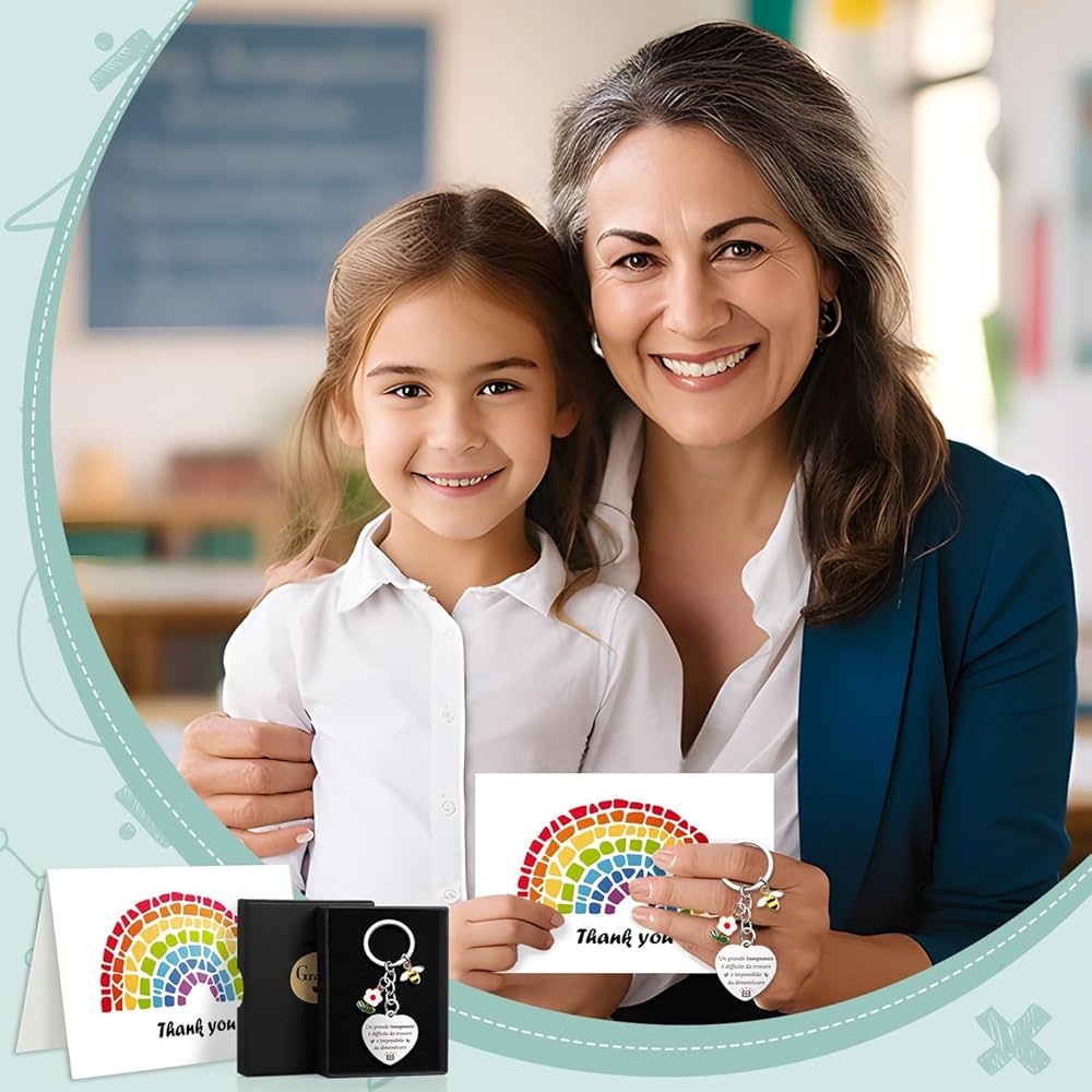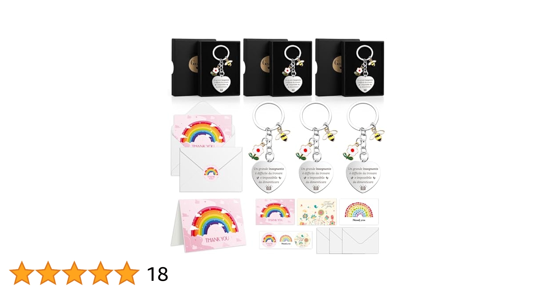 Idee regalo per insegnanti : le buste con fiori secchi da donna e i set regalo portachiavi possono essere utilizzati come regali per la festa dell'insegnante, regali di fine anno per insegnanti , regali di pensionamento per insegnanti , regali di ringrazi Materiali di alta qualità: il biglietto di ringraziamento in questo set idee regalo insegnanti per la Festa dell'insegnante è realizzato in carta doppia color rame da 300 g, carta di alta qualità, resistente e di buona consistenza; Il piccolo portachiavi a forma di fiore è realizzato in acciaio inossidabile, delicato e piccolo e non facile da indossare; La busta è realizzata in carta kraft spessa Dimensioni adatte: il regali maestre fine anno biglietto di ringraziamento ha una dimensione di 10x 15 cm ed è dotato di un nastro bianco largo 3 mm e lungo 2 m, che può essere utilizzato per fissare il piccolo portachiavi a forma di fiore sul biglietto di ringraziamento; Il portachiavi è piccolo e squisito; La dimensione della busta di carta kraft è 17,5x11 cm, molto adatta alle dimensioni del biglietto di ringraziamento; Basta mettere il biglietto di ringraziamento e il portachiavi nella busta Regali Maestre Jadive Set Da 6 Pezzi Fine Anno Portachiavi Regalo Maestre Design raffinato: questo set regalo maestra Ogni elemento incorpora gli elementi di gratitudine e crescita; Biglietto di ringraziamento con le parole Grazie per avermi aiutato a crescere; Portachiavi a 6 colori con la scritta Grazie Maestra stampata sopra; Ogni set di biglietti di ringraziamento e portachiavi è confezionato in una busta di carta kraft a forma di cuore; Il nastro bianco può essere utilizzato per fissare il portachiavi al biglietto di ringraziamento Set di ringraziamento per gli insegnanti: questo regalo per la stagione delle lauree include 6 biglietti di ringraziamento infantili con frasi di ringraziamento, portachiavi a forma di fiori delicati in 6 colori, 6 buste di carta kraft a forma di cuore e 1 nastro bianco; 6 set completi di biglietti di ringraziamento e portachiavi sono un fantastico set regalo per gli insegnanti, che esprime infinita gratitudine ed è pratico; Trasmette la tua gratitudine e dice addio ai regali stereotipati