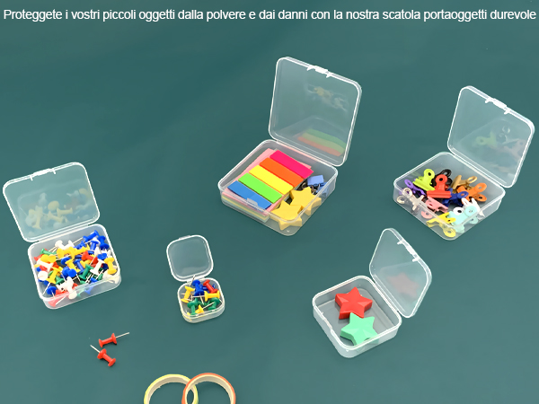 Scatole Plastica 6 Pezzi Scatoline Portaoggetti Di Plastica Trasparente, 10.5x7.5x2 Scatoline Plastica Materiale PP Sicuro: Questa organizzatori di piccole perline è realizzata in plastica pp alimentare, atossica, inodore, sicura e rispettosa dell'ambiente. Pratica Combinazione di Set: Ogni set contiene 6 pezzi di scatole porta minuteria per soddisfare le esigenze di stoccaggio categorizzato. il design impilabile massimizza il risparmio di spazio e il rapporto aureo di 10,5x7,5x2,5 cm garantisce la capacità i bordi della scatola sono finemente lucidati, lisci e privi di sbavature, senza che le mani ne risentano. il design impilabile massimizza il risparmio di spazio e il rapporto aureo di 10,5x7,5x2,5 cm garantisce la capacità e la facilità di trasporto, una scelta saggia per migliorare la qualità della vita. Applicazione Multiscenario: Organizzatori di piccole perline è adatto per conservare perline, orecchini, bottoni, pillole, erbe, monete, gioielli, cosmetici e altri oggetti di uso quotidiano. Pratica Combinazione di Set: Ogni set contiene 6 pezzi di scatole porta minuteria per soddisfare le esigenze di stoccaggio categorizzato. il materiale stesso ha eccellenti prestazioni antiusura e antigoccia, è leggero, durevole e non si deforma facilmente.